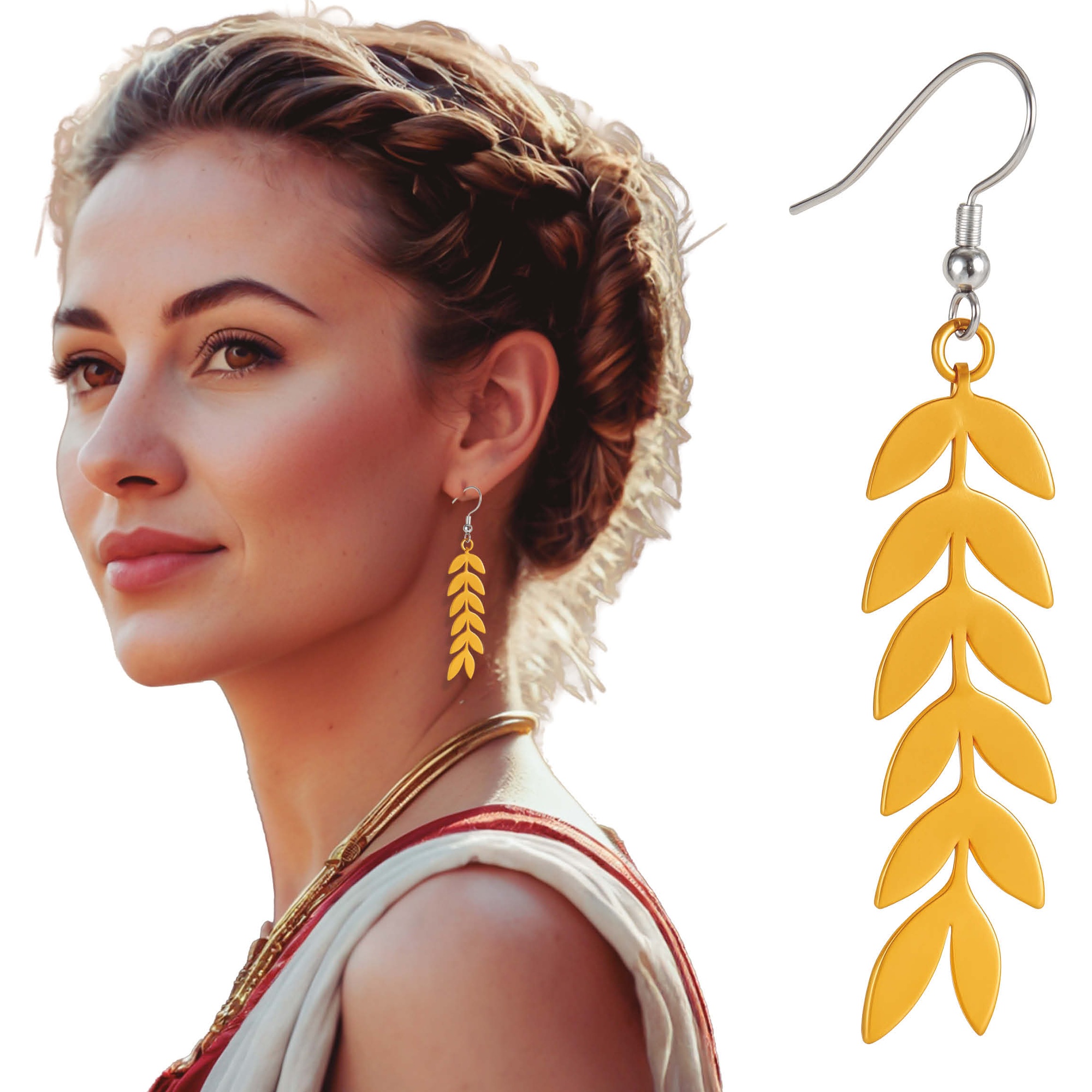 Brincos romanos dourados inspirados na clássica coroa de louro.