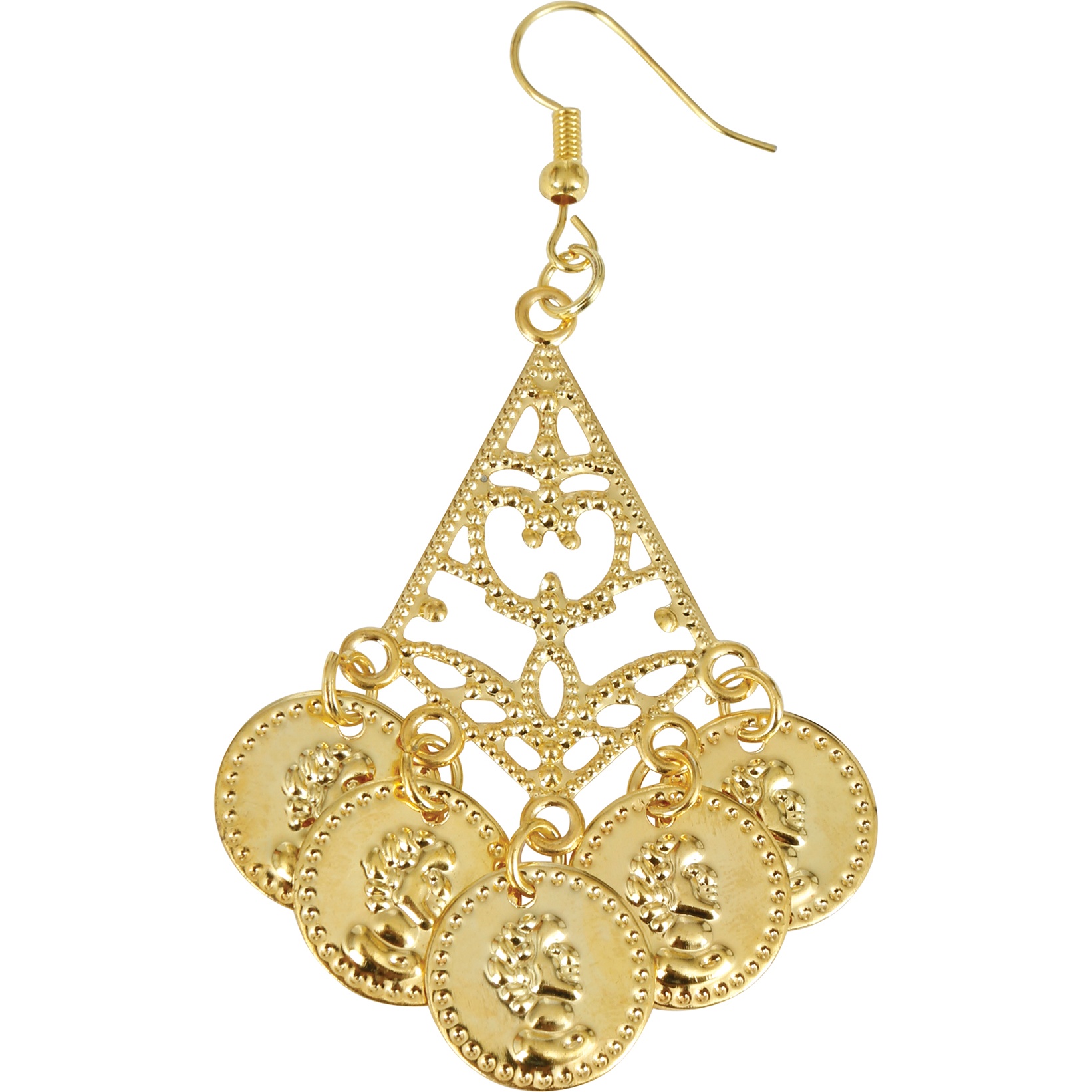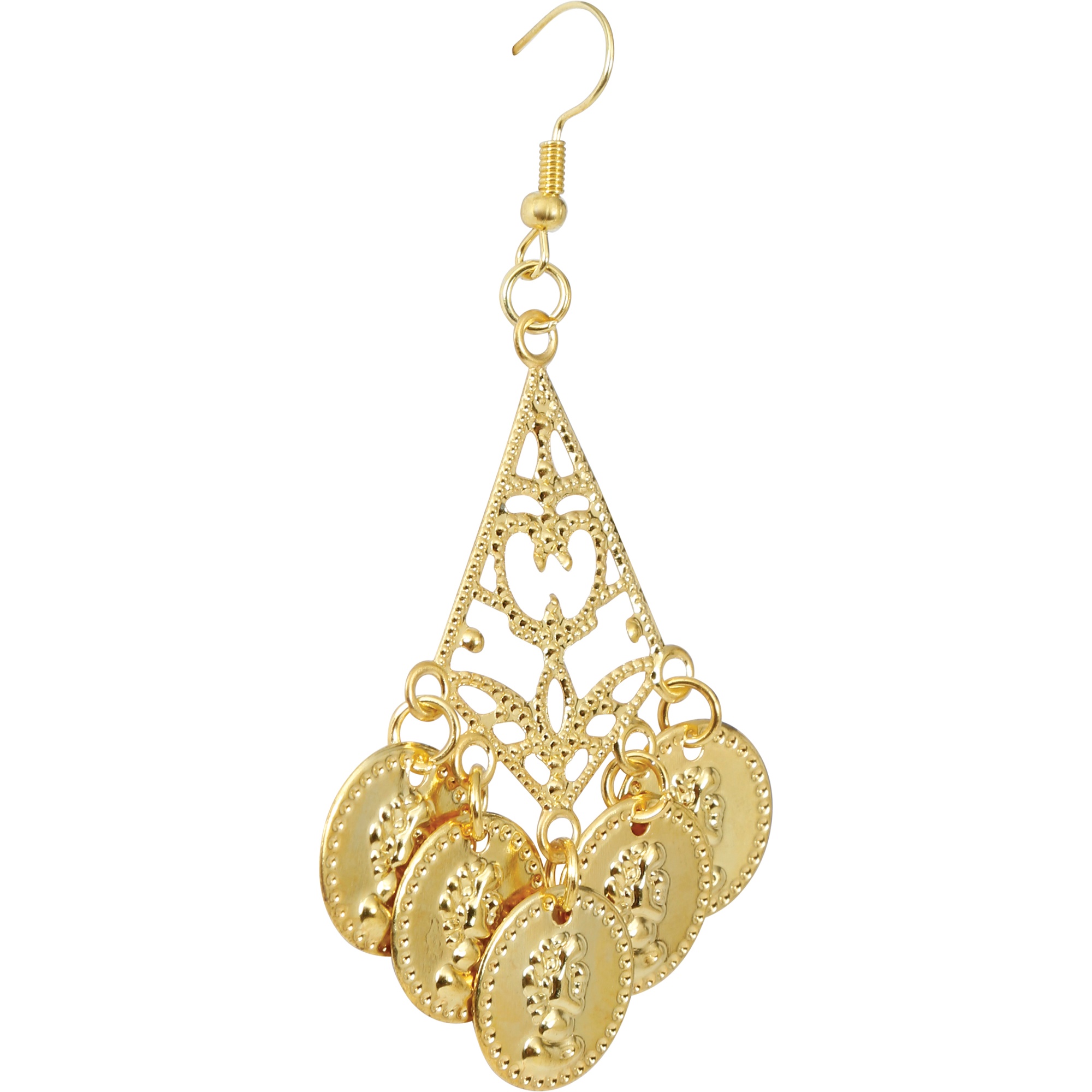 Brincos com várias moedas que criam movimento, brilho e um som leve ao dançar. Ideais para completar o seu look de dança do ventre, Carnaval, festas temáticas ou apresentações. O design marcante acrescenta um toque oriental e festivo a qualquer conjunto. Gancho confortável para colocar rapidamente e usar durante todo o evento.