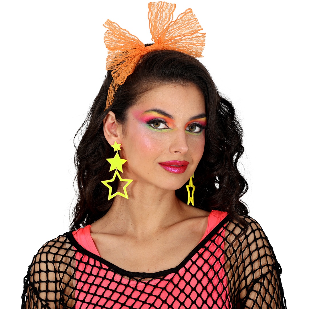 Brincos com design de estrelas em cores neon, perfeitos para que o senhor/a senhora complete looks dos anos 80 e looks de festa.