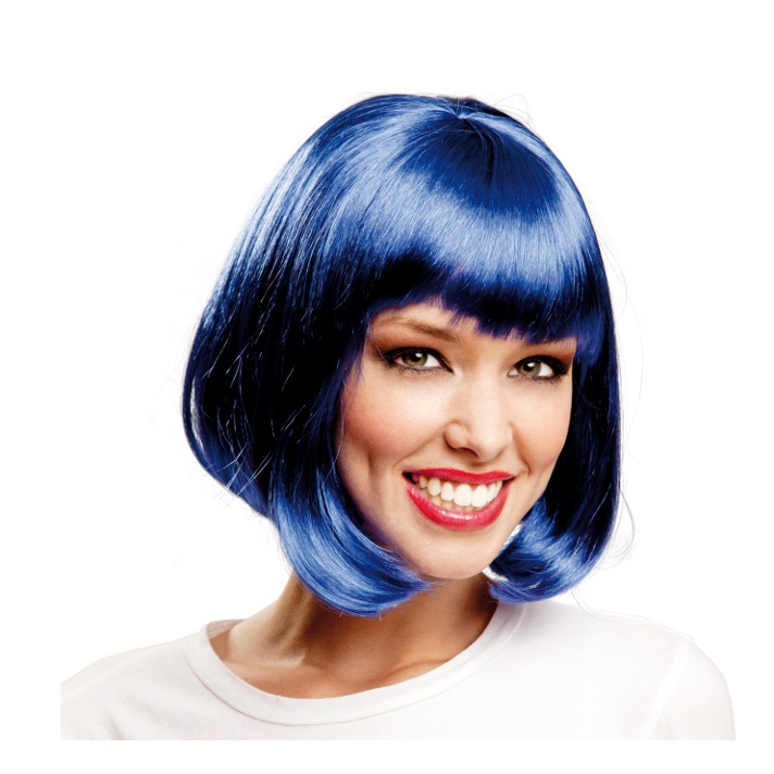 Cabeleira azul eléctrica de comprimento médio com franjas e pontas arredondadas que dará ao seu look um aspeto muito marcante.