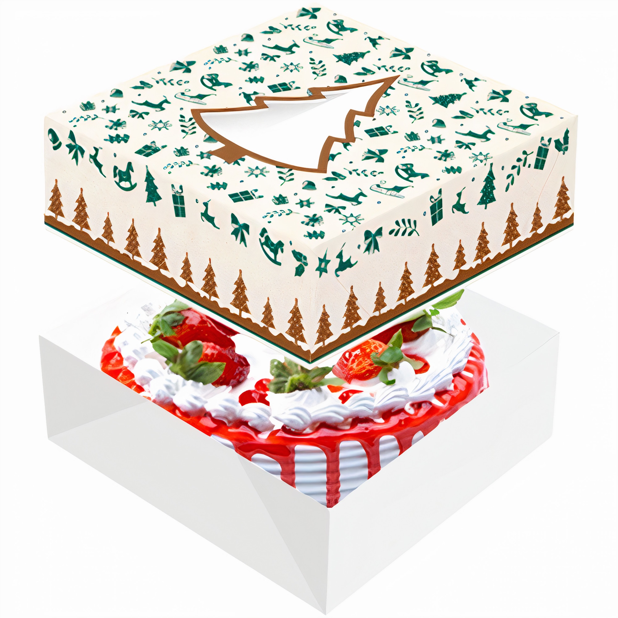 Caixa para o Bolo de Reis 30 x 30 x 7,5 cm com árvore de Natal
