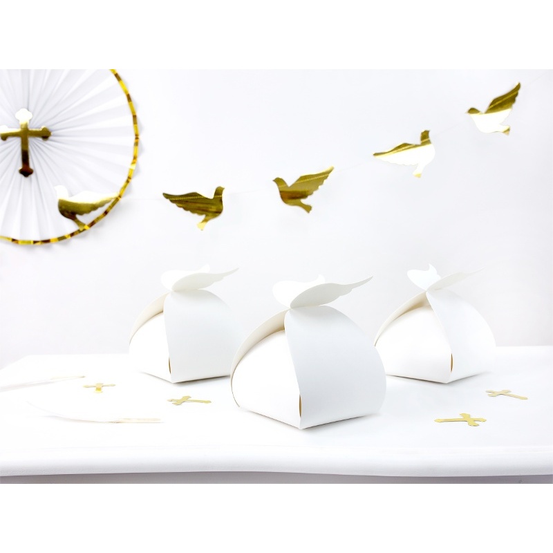 Este pacote contém dez caixas de cartão, totalmente brancas, que pode utilizar como recipiente para doces ou para oferecer como lembrança daquela festa ou evento especial.
