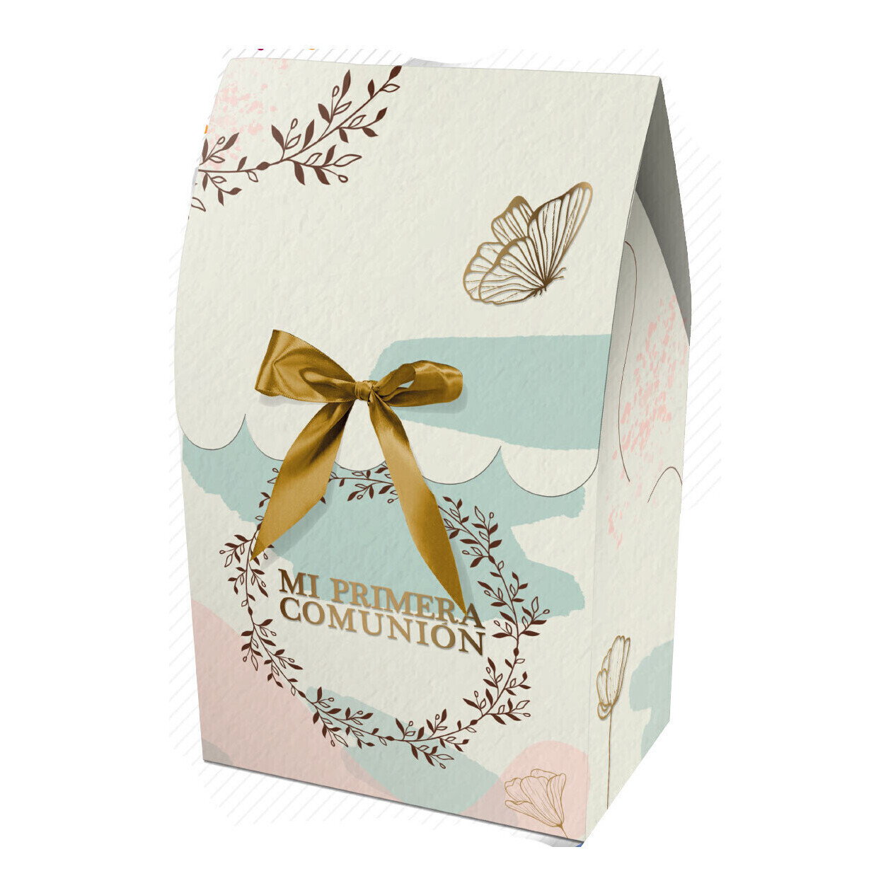 Caixa para presente de 13,5 x 8 x 5 cm com aba de Comunhão Bege - 2 unidades