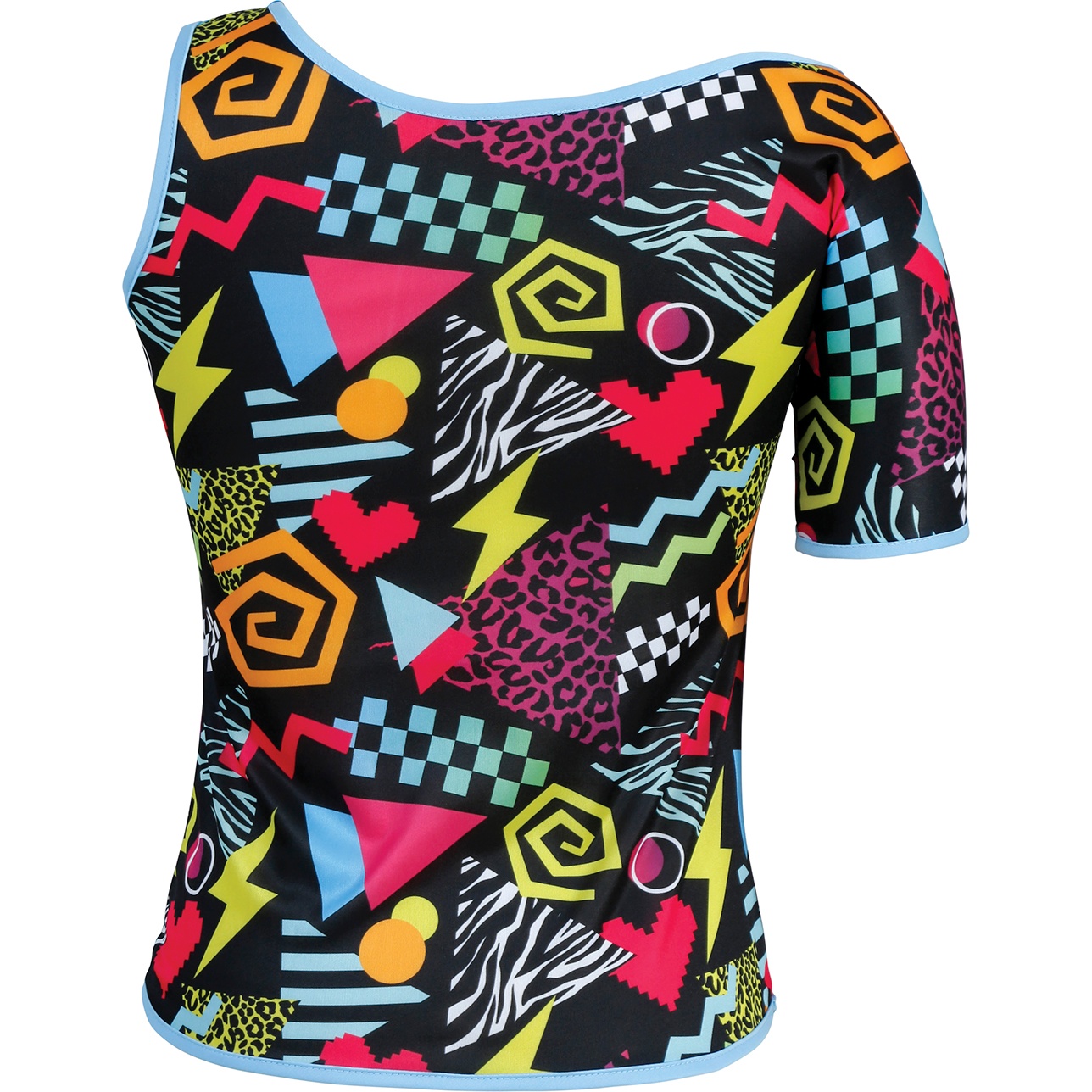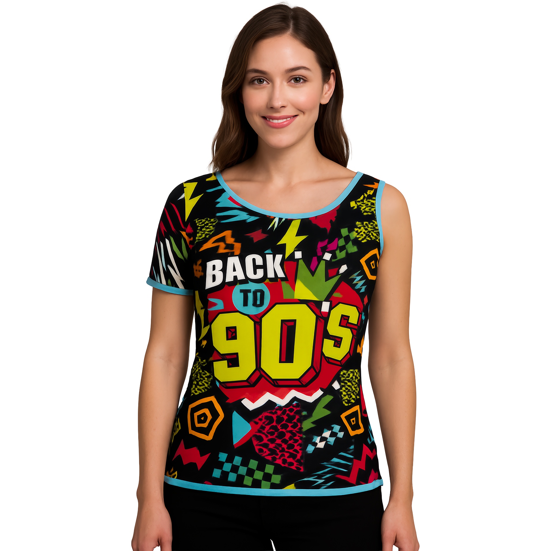 Reviva a energia dos anos 90 com esta camiseta retrô em cores neon. Sua estampa vibrante, com motivos geométricos e elementos gráficos típicos da época, captura a estética pop e a nostalgia da década. O corte confortável e o tecido leve de poliéster permitem vesti?la com estilo durante toda a noite. Peça marcante e versátil para combinar com acessórios retrô e conquistar um look vintage instantâneo.