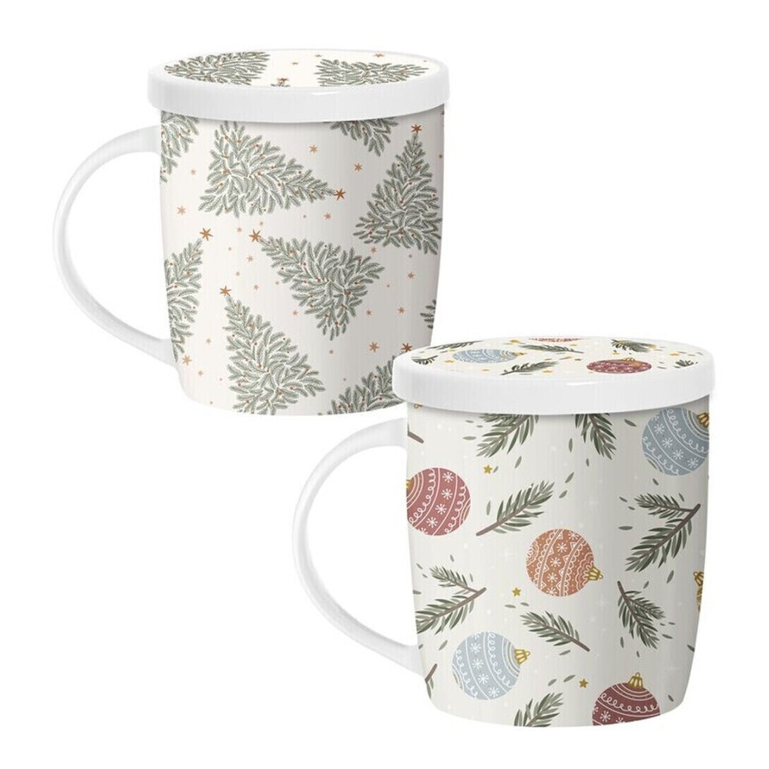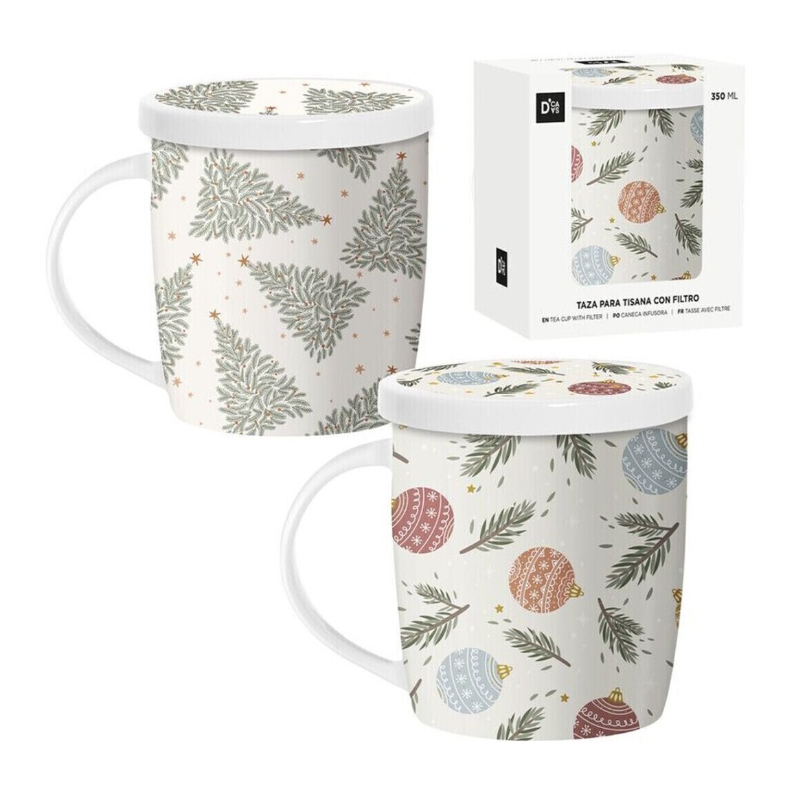 Caneca de Natal Branca de 350 ml com filtro para chá - 1 unidade