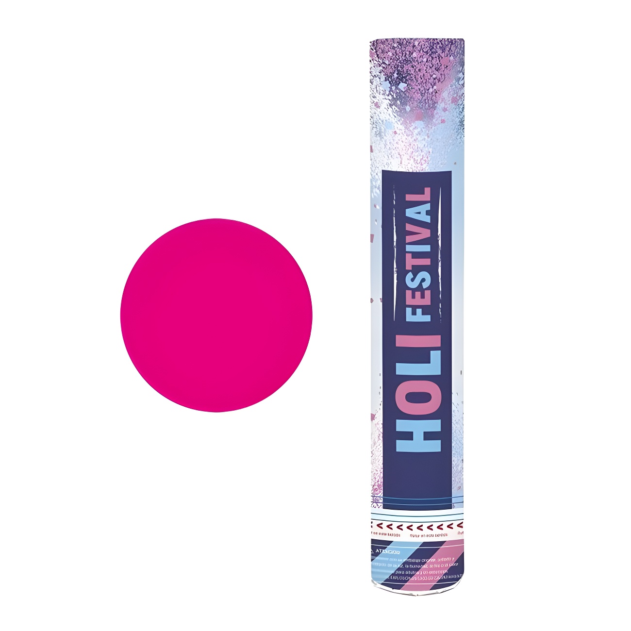 - Contém confetis de pó de holi azuis ou cor-de-rosa.
