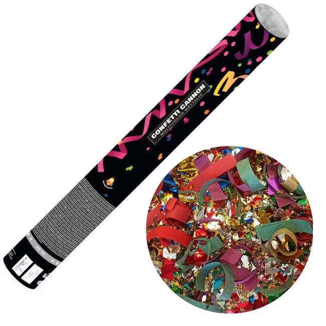 Canhão de confettis colorido de 60 cm, feito de papel de alumínio e papel.
