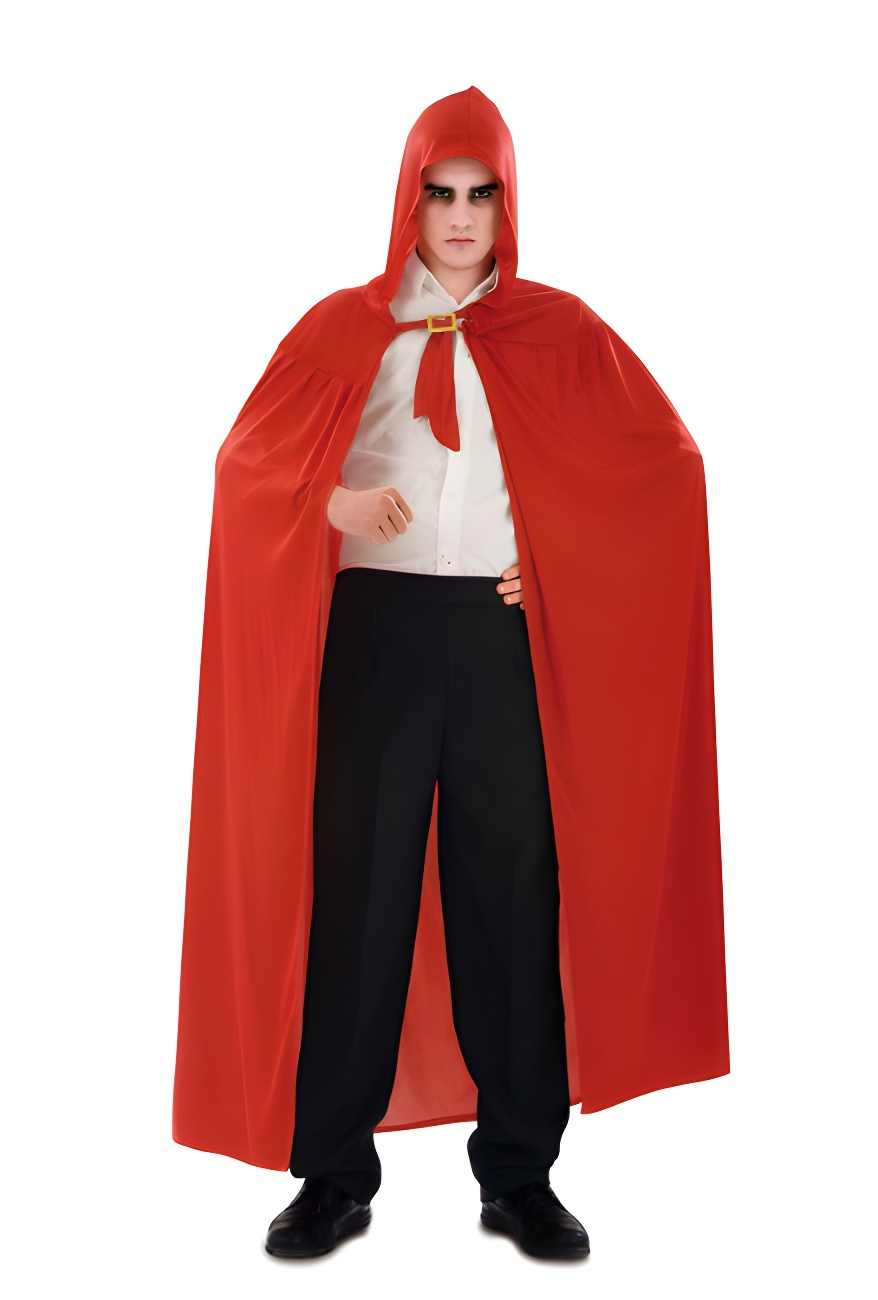 O acessório perfeito para complementar a sua fantasia. Esta capa com capuz pode ser utilizada para temas de Halloween como os vampiros ou também para modelos de estilo medieval. Disponível em preto e vermelho.