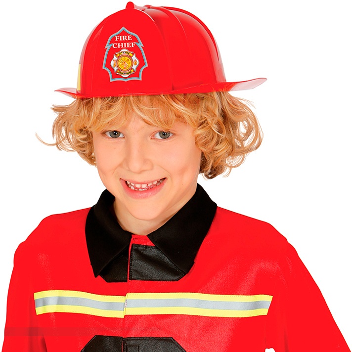 O estilo do capacete é como os da indumentária de bombeiros nos Estados Unidos, e na nossa loja encontrará o disfarce perfeito para complementar com este acessório.