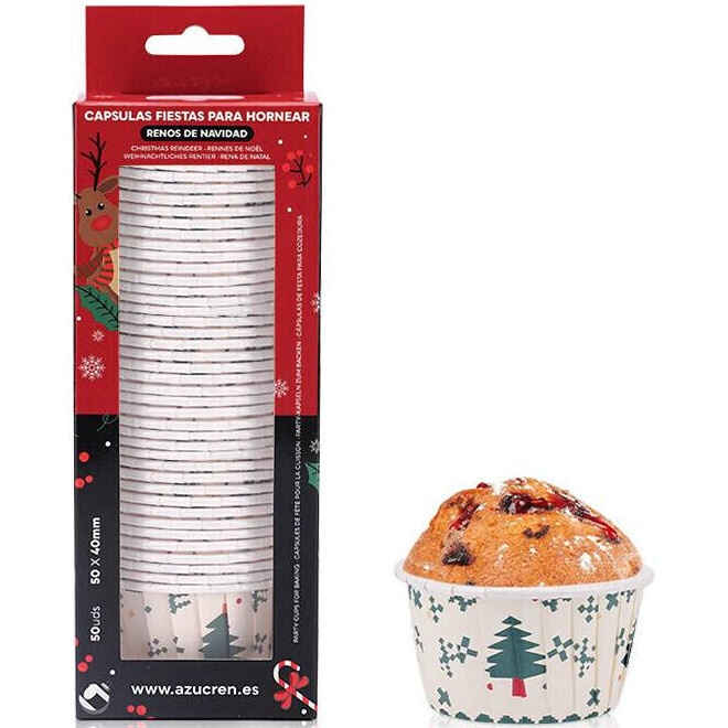 Cápsulas para cupcakes de 5 cm de pinheiros de Natal - 50 unidades