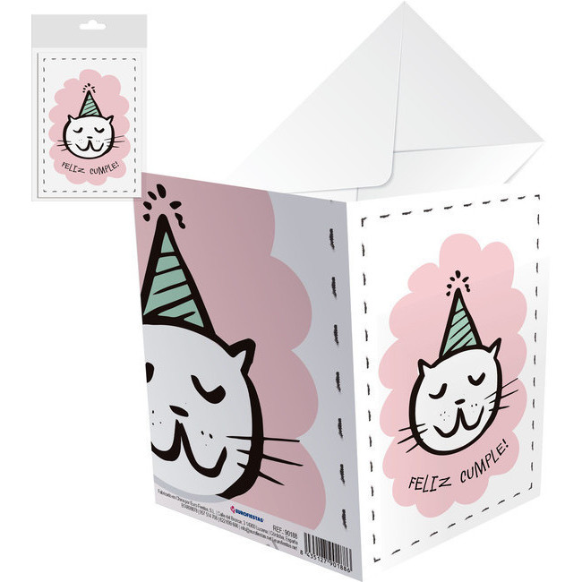 Cartão de aniversário gato com chapéu