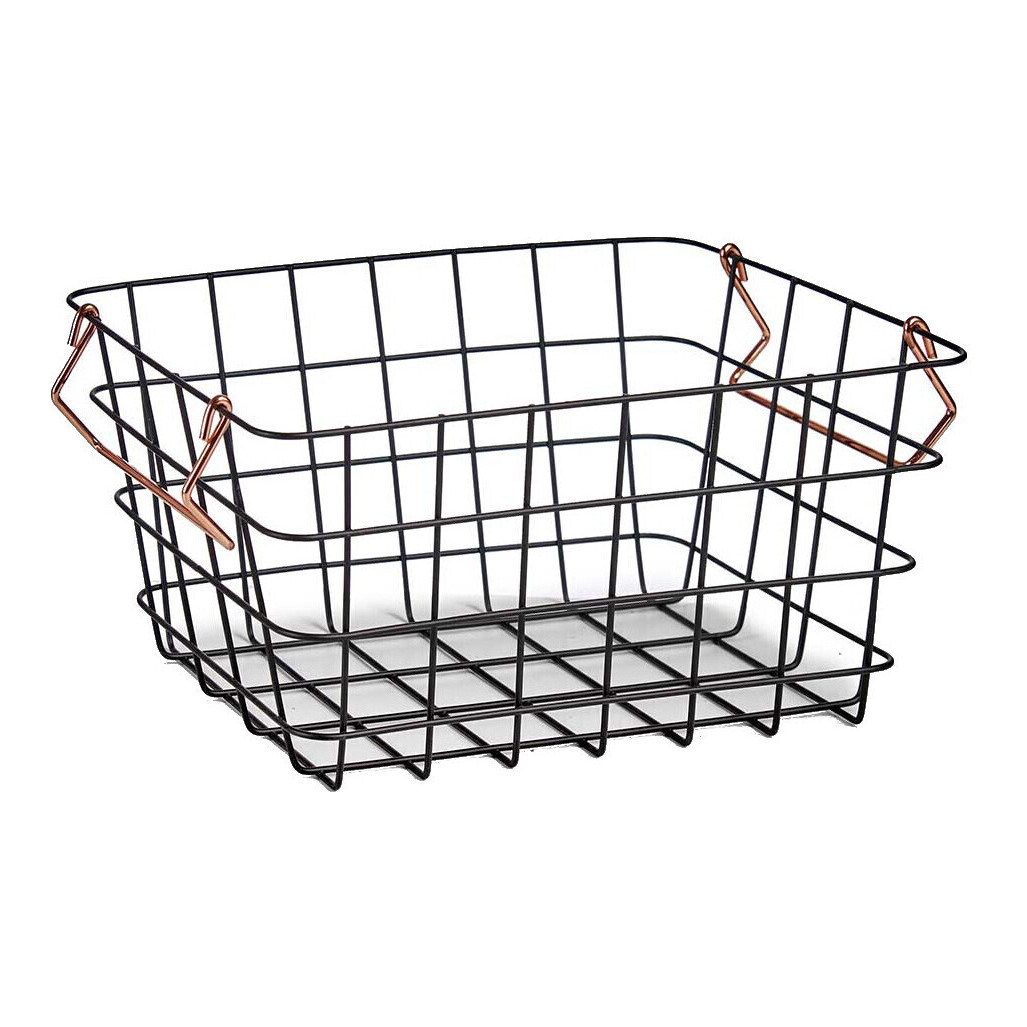 Cesto 31,5 x 22,5 x 14 cm metal preto com pegas em cobre