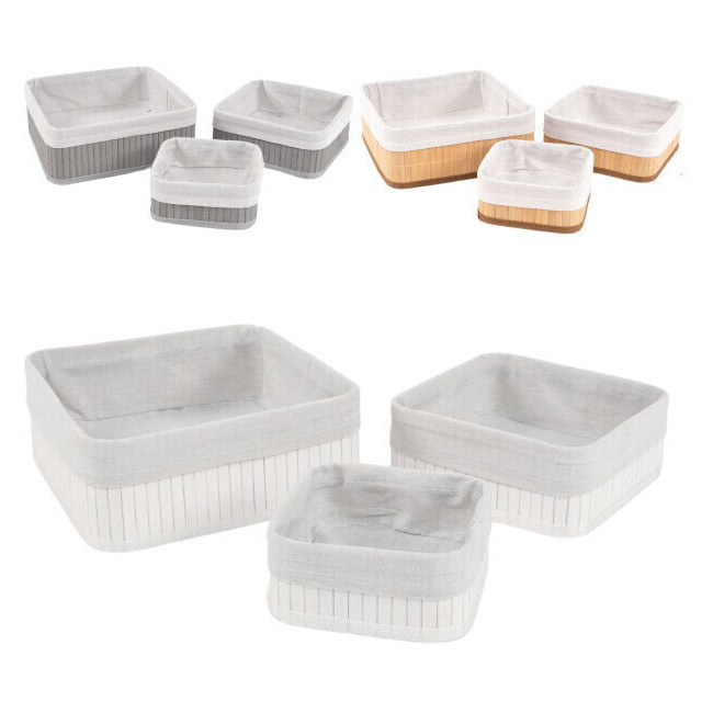 Cestos de bambu quadrados em cores diferentes - 3 unid.