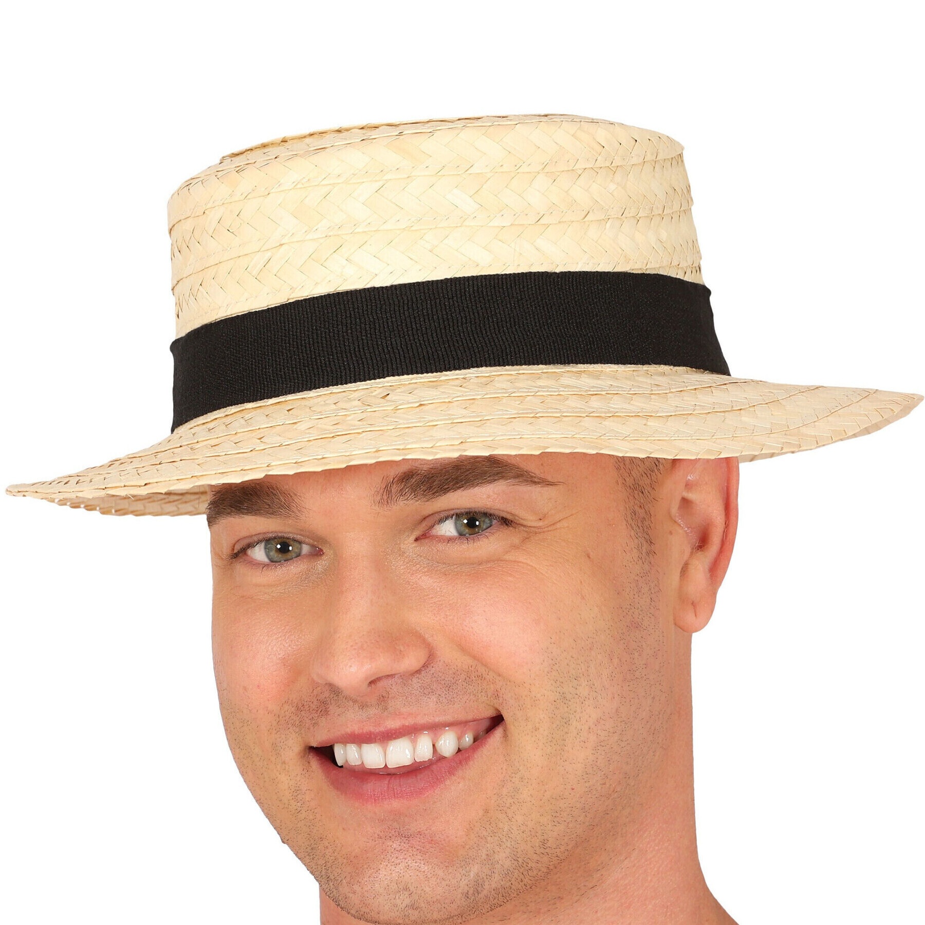 Chapéu ao estilo dos gondoleiros de Veneza. Este tipo de chapéu é chamado de canotier.