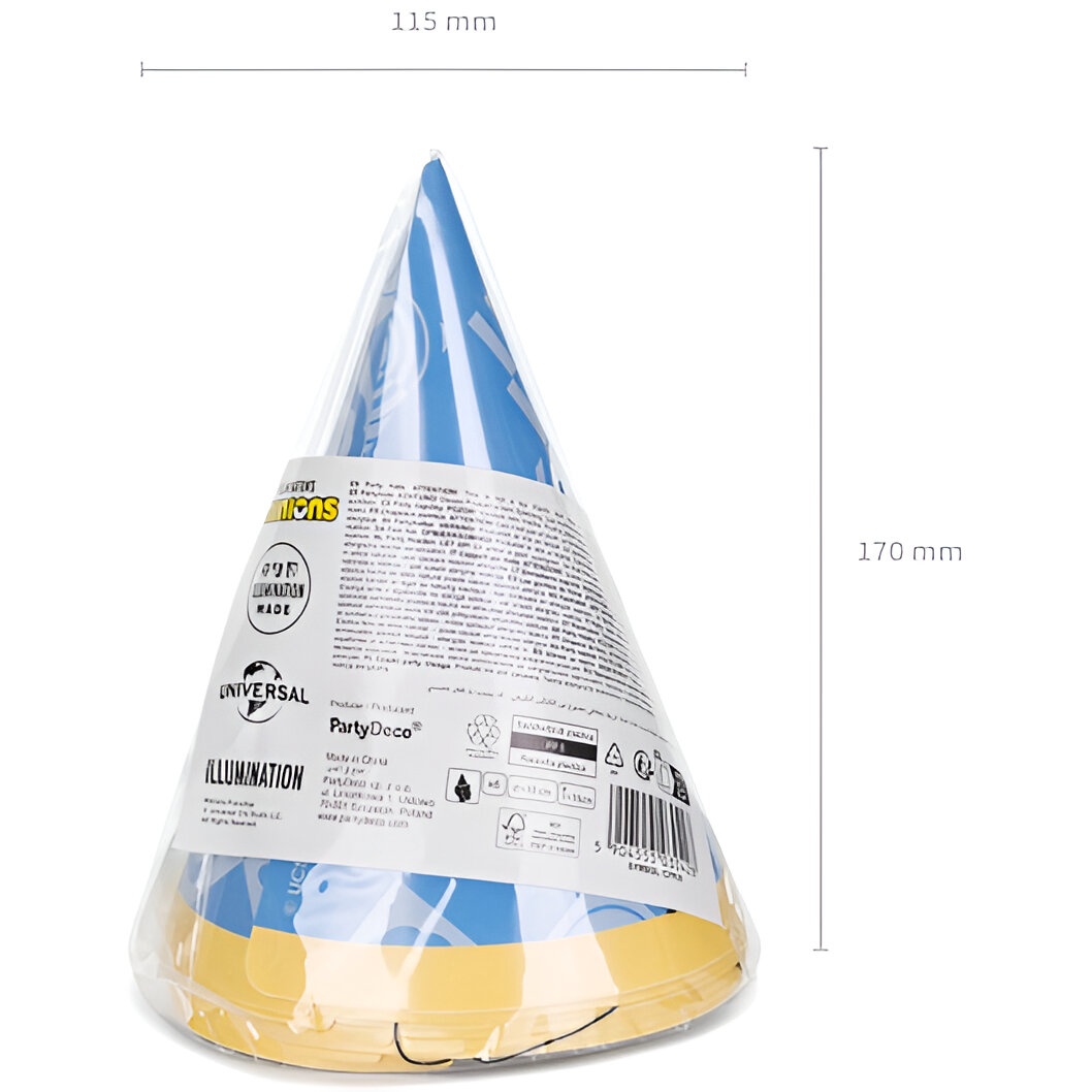 Chapéus cónicos oficiais dos Minions com estampa em tons de azul e os personagens mais conhecidos. O(a) senhor(a) encontrará um design pensado para os mais pequenos: leve, confortável e com uma silhueta clássica que facilita a colocação. Ideais para animar aniversários infantis e sessões de fotos temáticas. Produto com licença oficial que dá um toque divertido e reconhecível a qualquer celebração.