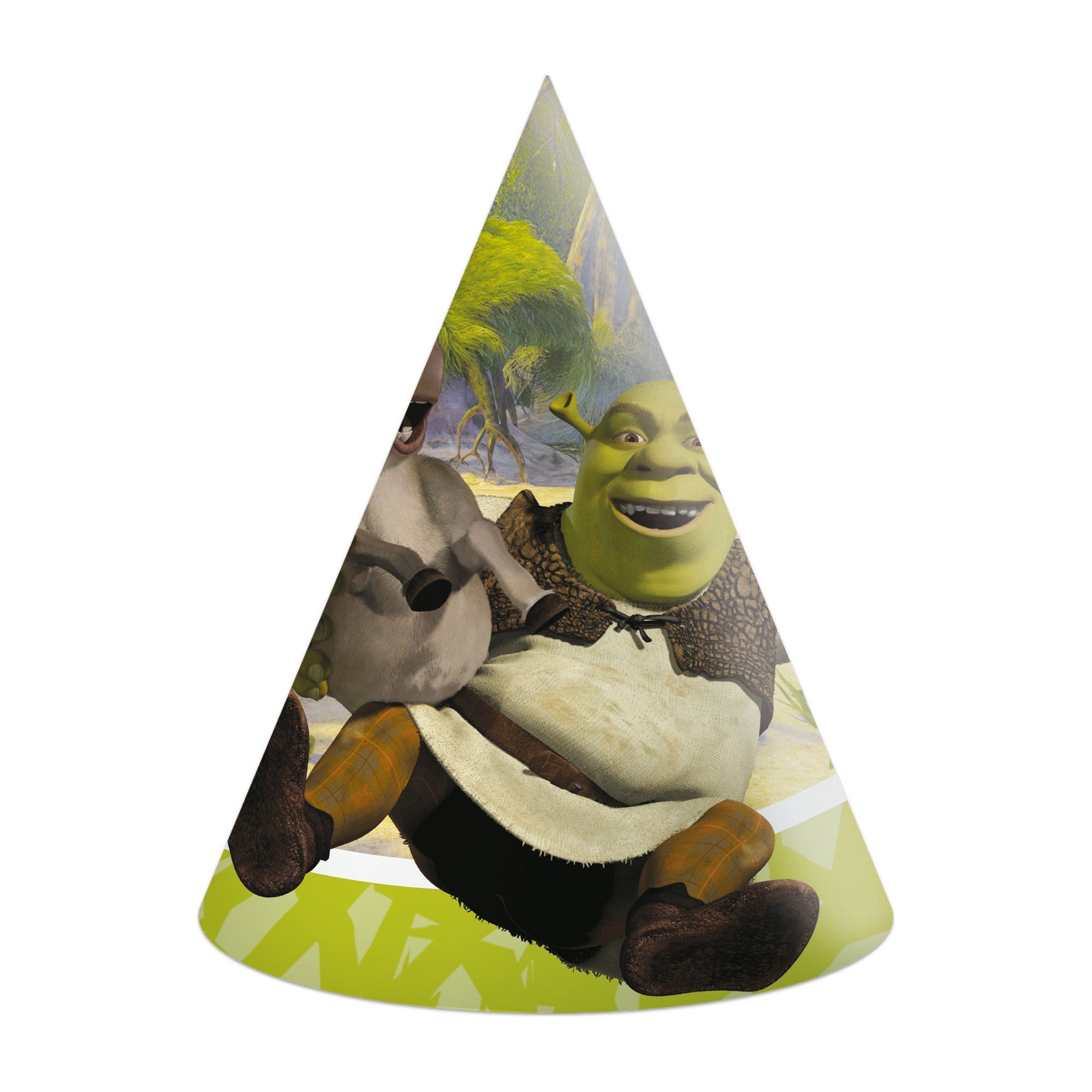 Chapéus de festa com o divertido design do Shrek, concebidos para animar qualquer celebração infantil.