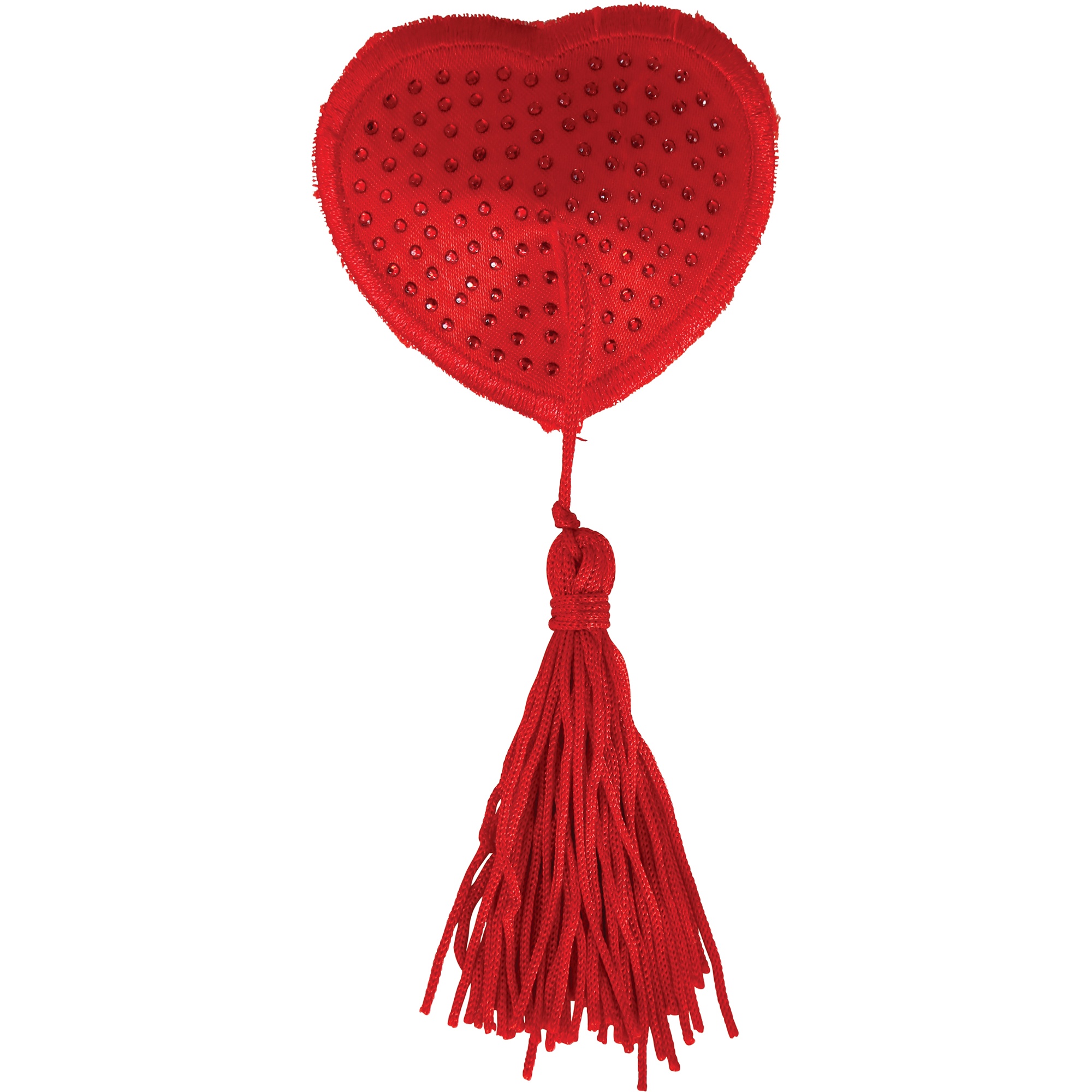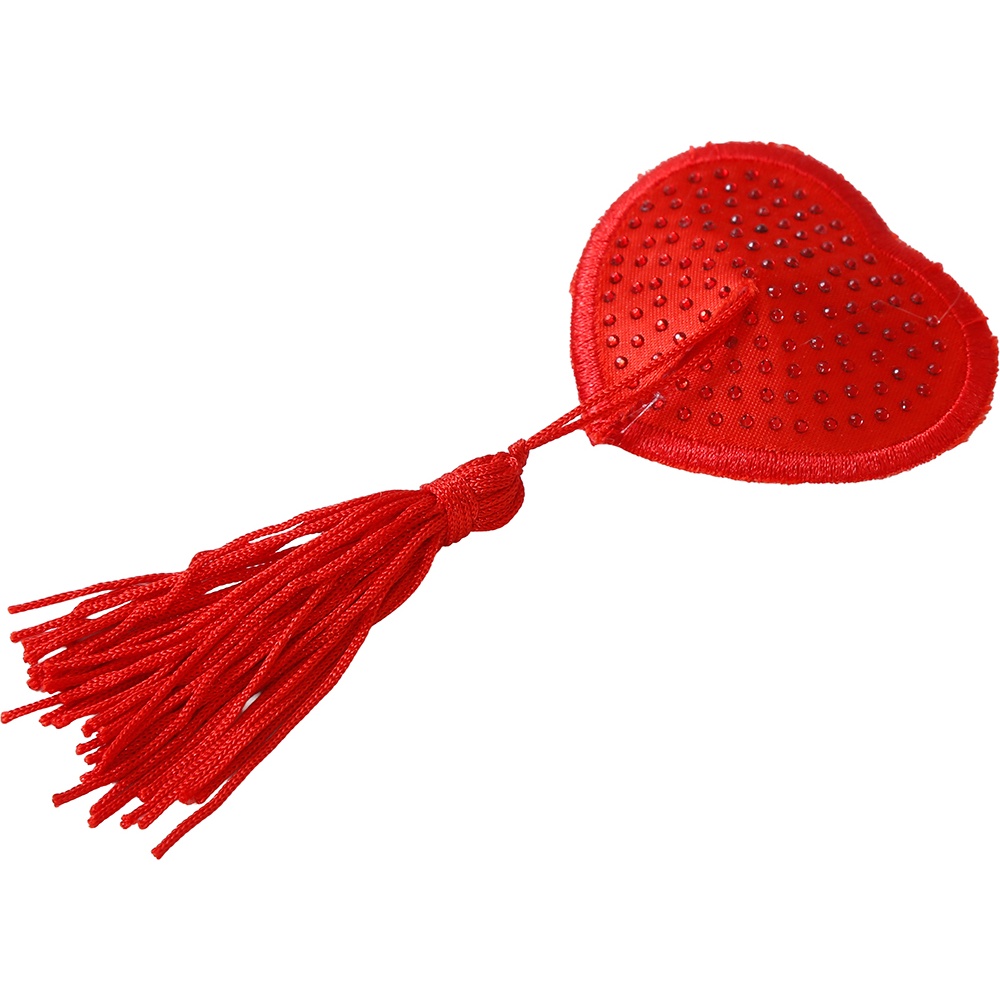 Acessório sensual e marcante que acrescenta um toque atrevido e romântico a qualquer conjunto íntimo. Os cobre-mamilos apresentam um design em forma de coração vermelho com borlas longas que criam movimento e estilo. São fabricados em látex e poliéster, combinando flexibilidade e conforto. Detalhe perfurado que realça a textura e o acabamento do produto. Leves e discretos, perfeitos para que o senhor ou a senhora surpreenda e complemente looks noturnos.