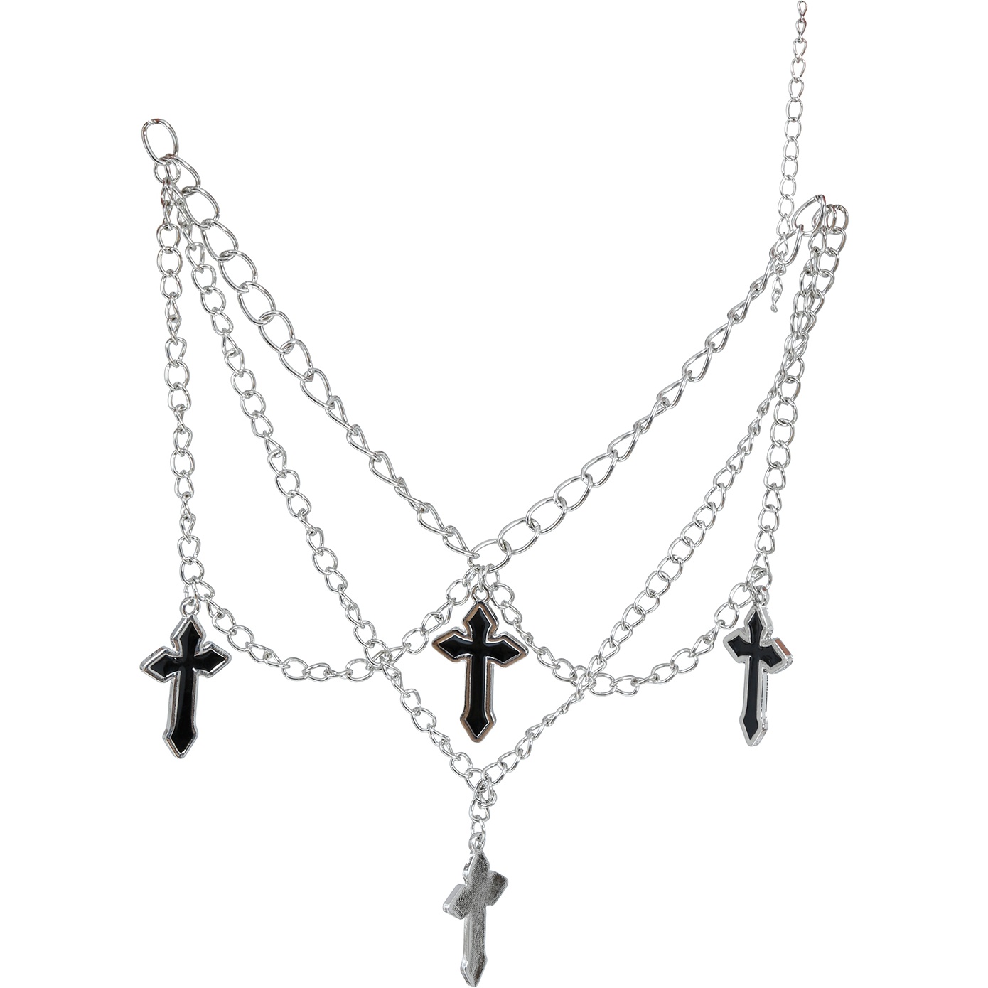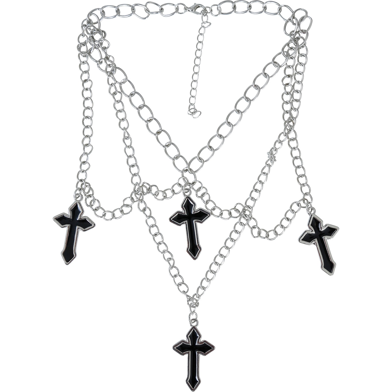 Colar de 4 cruzes em camadas com estética streetwear urbana. Confere um toque arrojado e moderno aos looks casuais e de inspiração urbana. Apresenta quatro cruzes pendentes distribuídas por várias correntes para um efeito sobreposto muito atual. Inclui corrente com fecho ajustável para adaptar o comprimento ao seu estilo. Confeccionado em metal, com contraste escuro nas cruzes para um acabamento marcante e resistente.