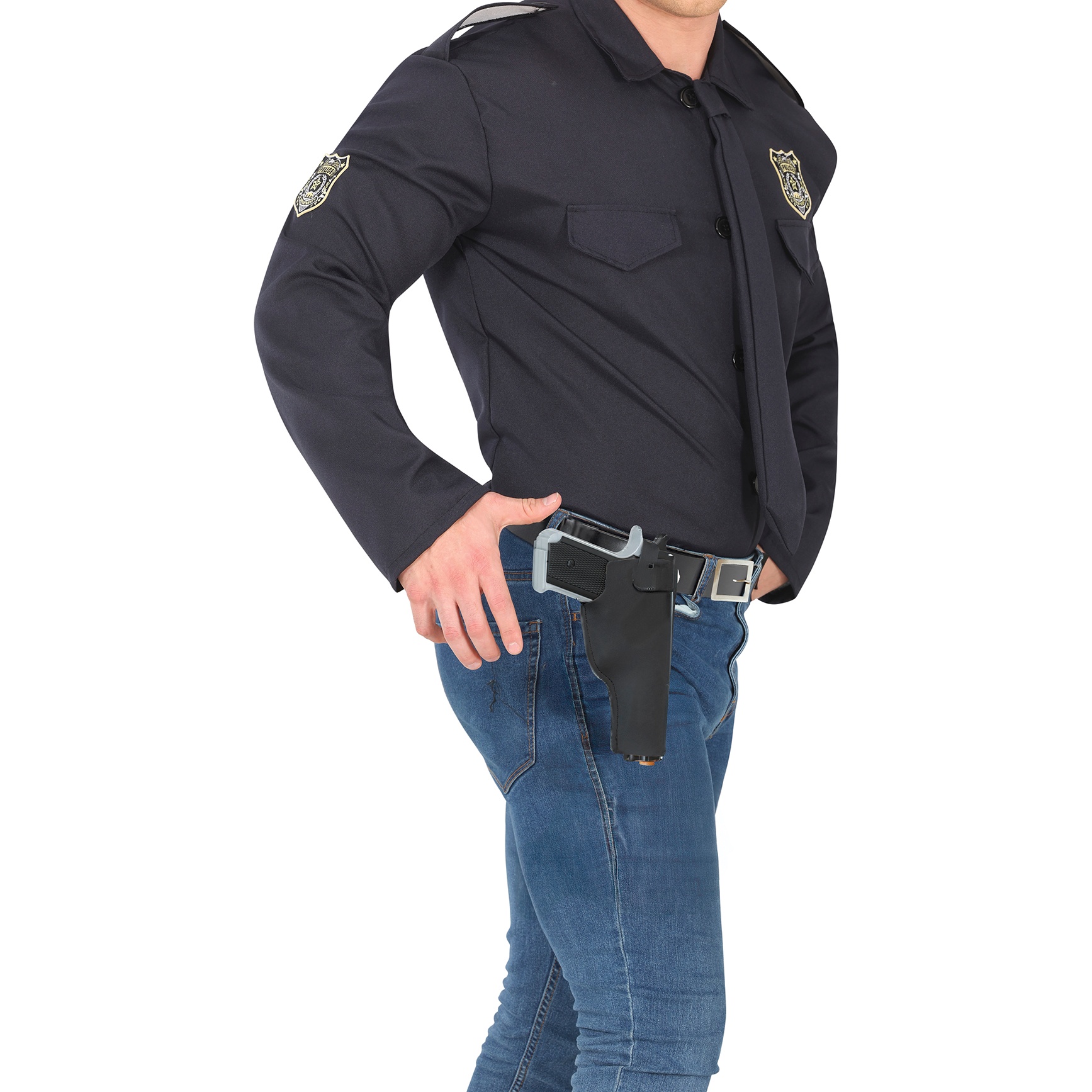 Acessório ideal para completar a fantasia de policial com aparência realista e segura. Feito em PVC, oferece acabamento convincente e leveza para usar durante horas em festas e eventos. Mede aproximadamente 22 cm, tamanho pensado para combinar com uniformes e outros acessórios de polícia.