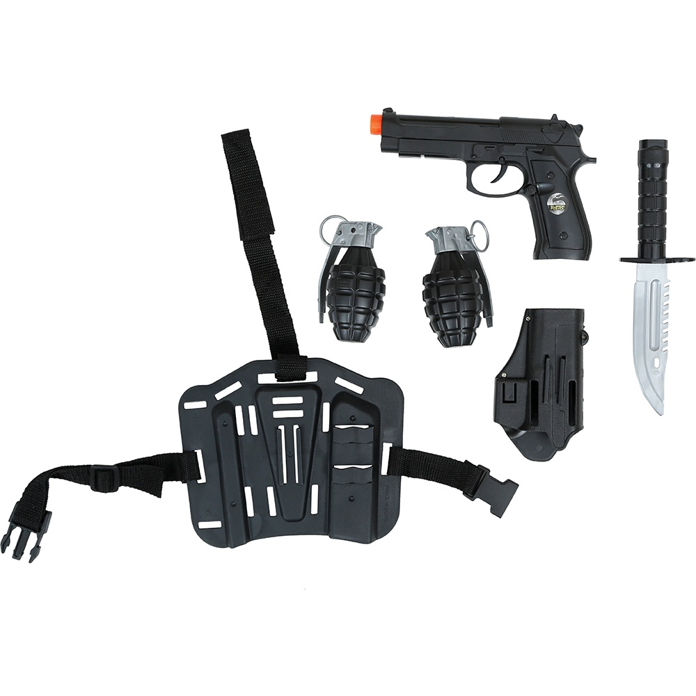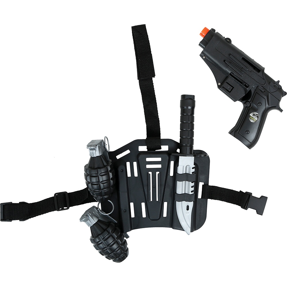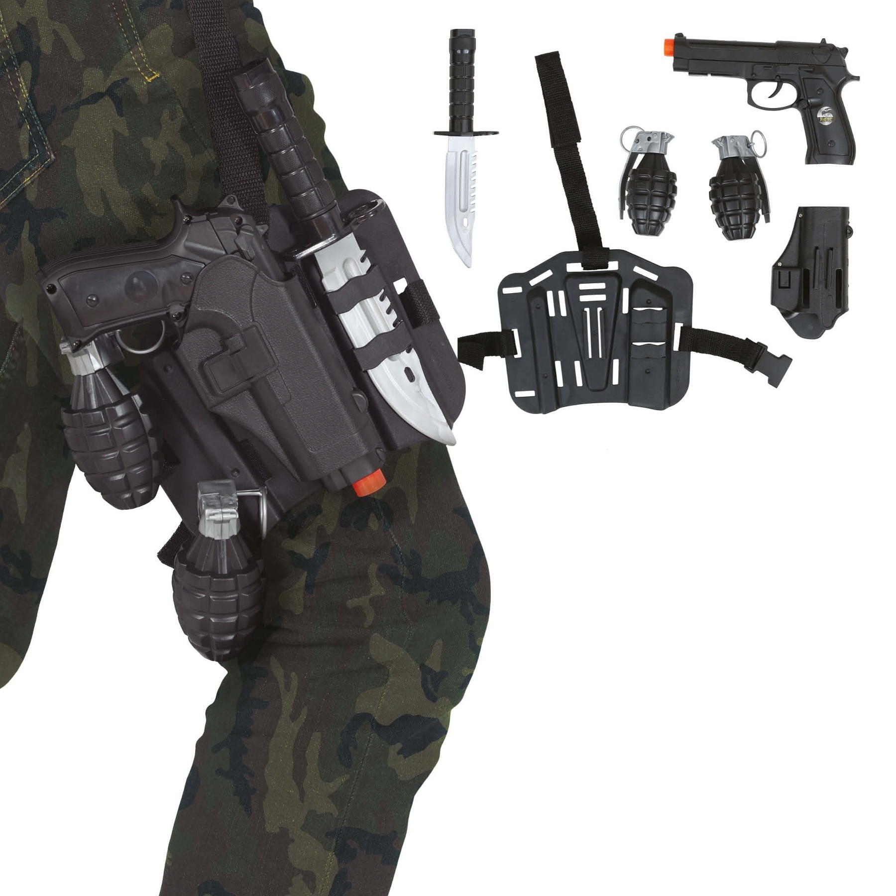 Complete o seu disfarce militar com um conjunto tático de aparência realista, pensado para festas e eventos temáticos. As peças em PVC oferecem um acabamento convincente, sem renunciar à leveza. Perfeito para o Carnaval e outras celebrações em que o senhor ou a senhora queira dar um toque autêntico ao seu visual.