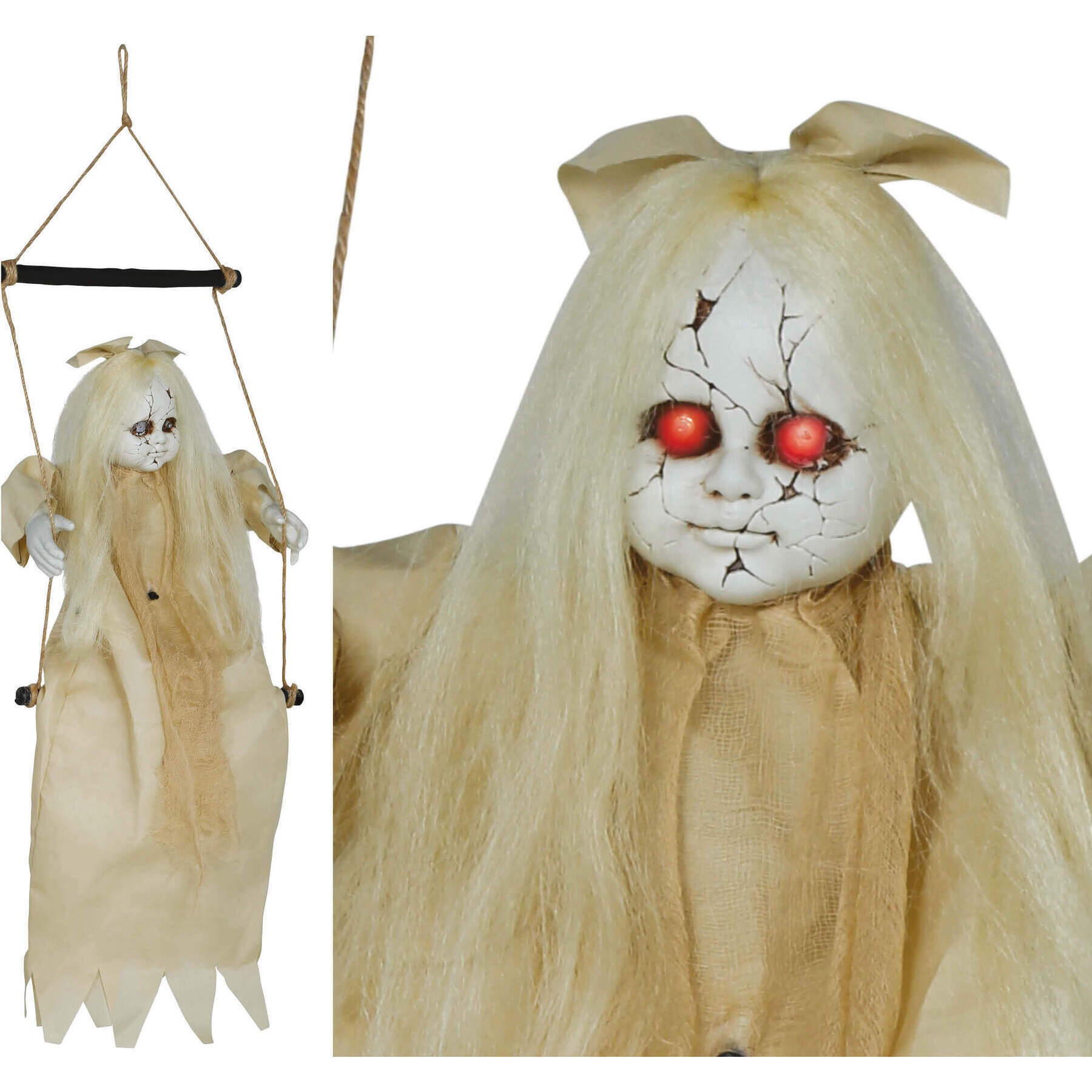 Colgante de menina em baloiço com luz e som de 75 cm