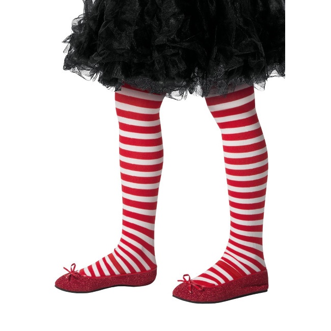 São uns collants às riscas horizontais com uma mistura de vermelho e branco. Ficam muito bem com qualquer fato de Natal.