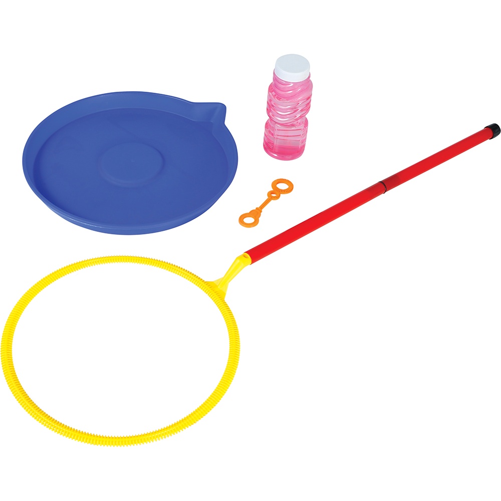 Desfrute em família com este conjunto de bolhas de sabão gigantes, pensado para crianças e adultos. Crie bolhas enormes e brilhantes que surpreendem pelo tamanho e pelas cores. O kit inclui aro, bandeja e solução concentrada para obter resultados imediatos. Fabricado em PVC resistente, é leve e fácil de manusear para todas as idades.