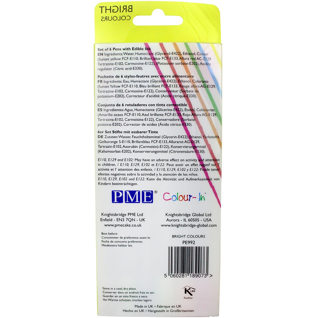 - Conjunto de 6 canetas marcadoras com tinta comestível.