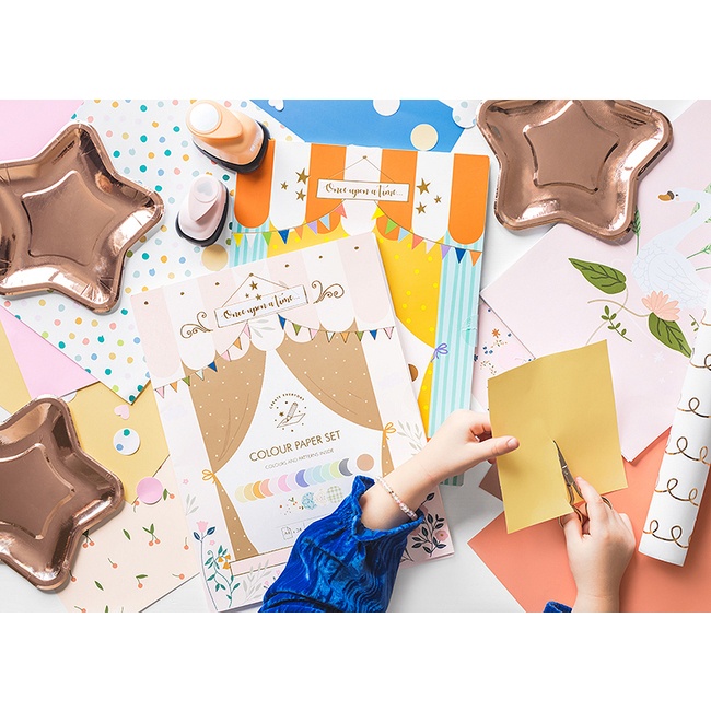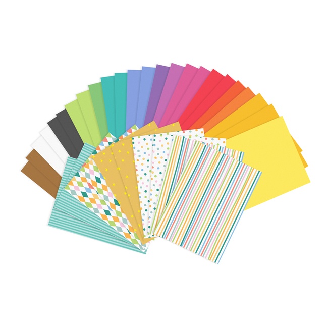 Conjunto de 34 folhas coloridas e com padrões variados em formato DIN A4 para as crianças se divertirem a fazer trabalhos manuais.