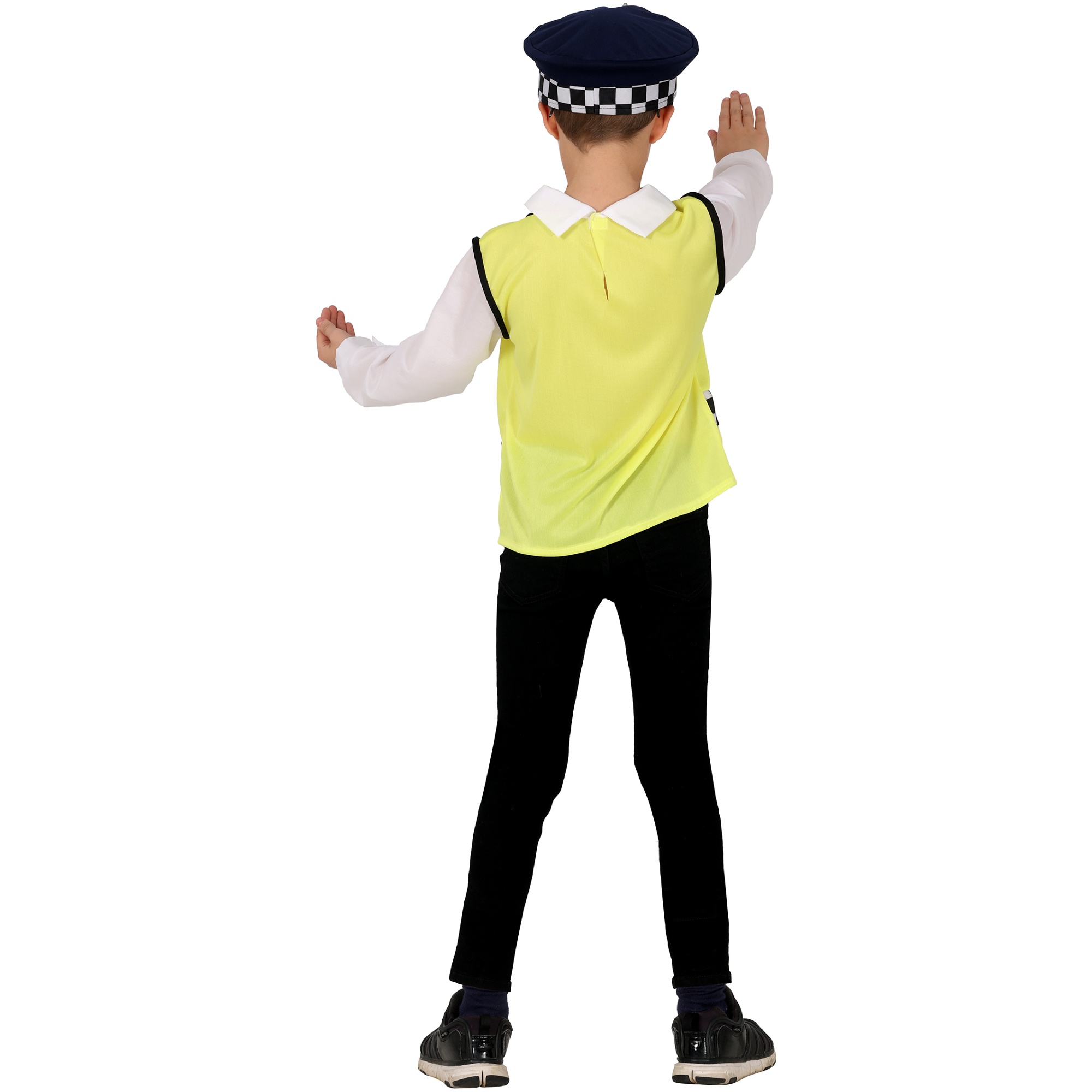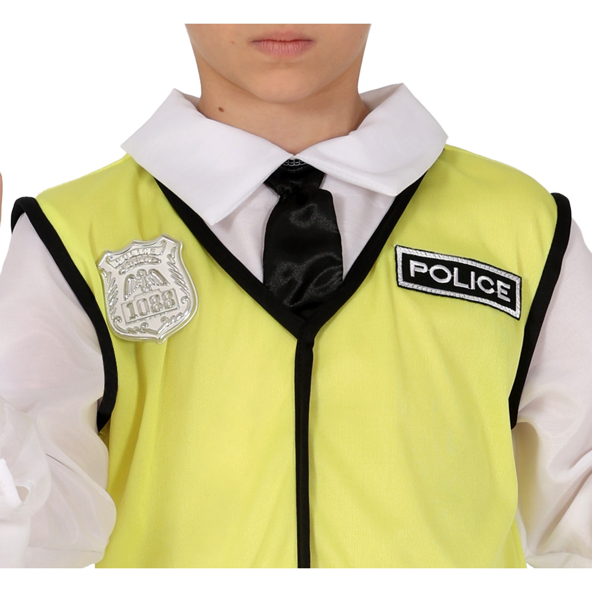 Conjunto infantil de polícia concebido para jogos de faz?de?conta e festas. Inclui um colete de alta visibilidade com padrão xadrez e um chapéu com emblema que conferem um aspecto realista. Fabricado em poliéster leve para maior conforto durante o uso. Indicado para animar celebrações e estimular a imaginação das crianças.