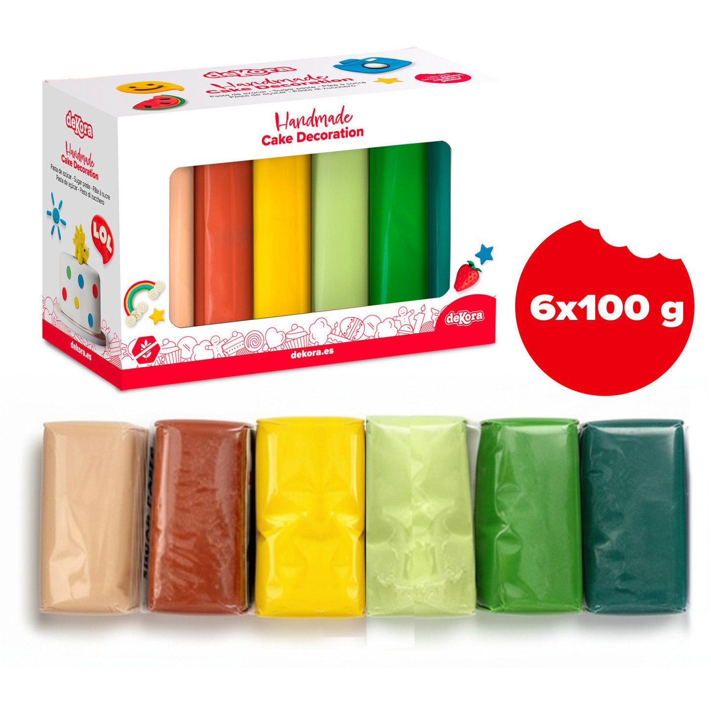 Conjunto de pasta de açúcar de 6 cores a selva de 600 gr - Dekora