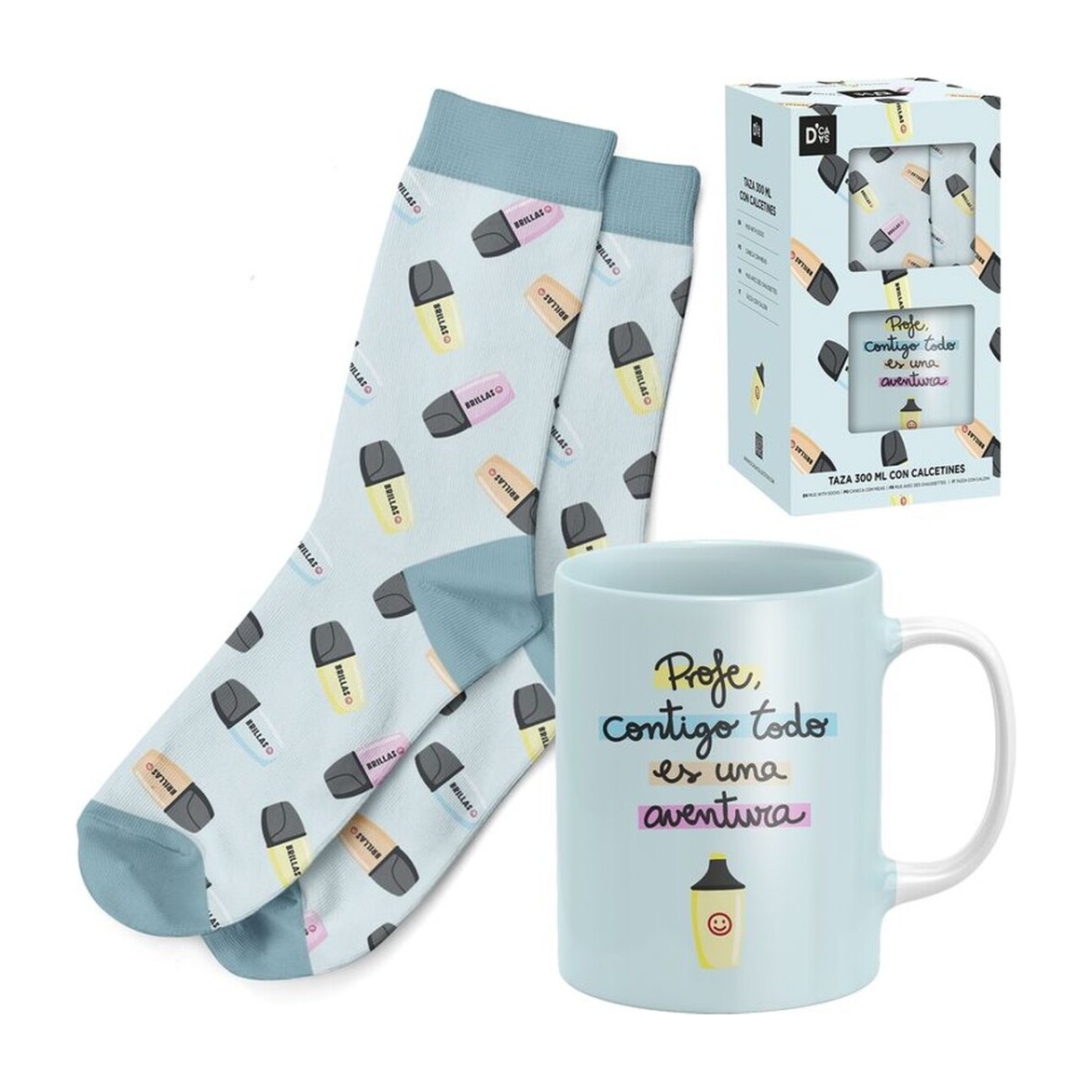 Um presente pensado para surpreender o professor ou a professora de forma original e afetuosa. A caneca traz uma mensagem alegre que transmite gratidão e bom humor. As meias apresentam uma estampa coordenada que reforça o caráter escolar e divertido do conjunto. Perfeito como presente de final de curso, aniversário ou para um agradecimento informal.