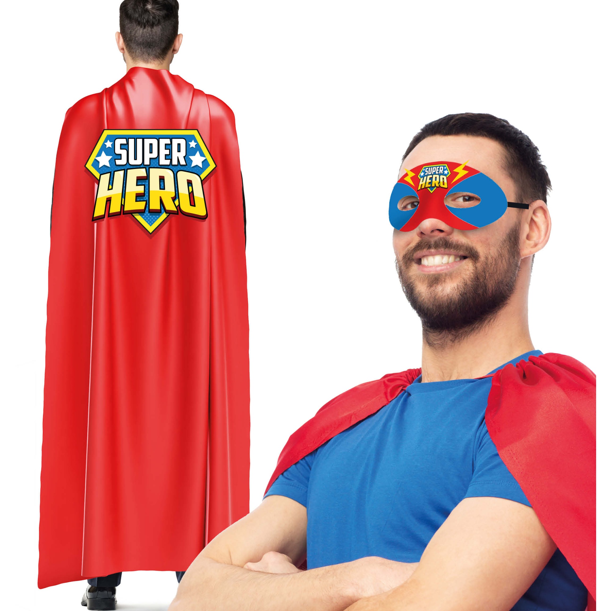 - Design vistoso com o logo 'SUPER HERO' na capa e antifaz com elástico para um ajuste seguro.