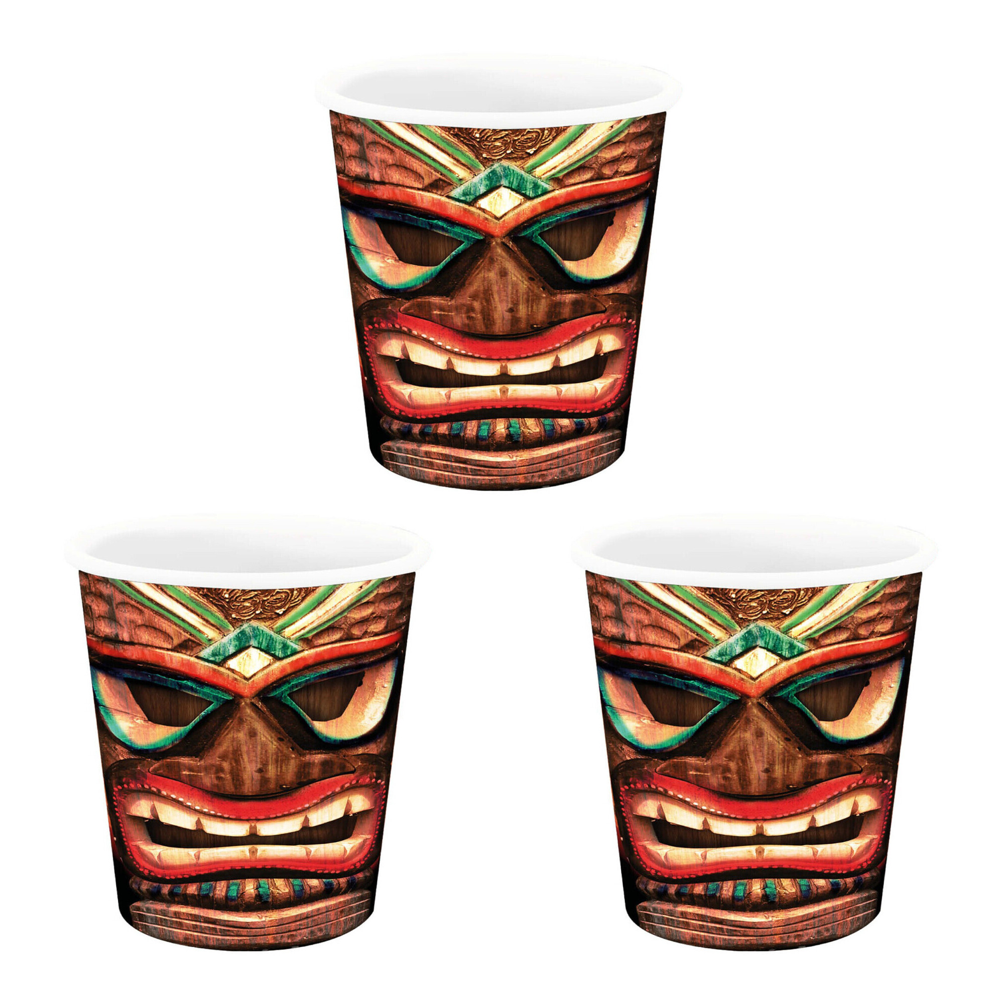 Pack de 3 copos de shot em cartão com um desenho de totens típicos do Havai.