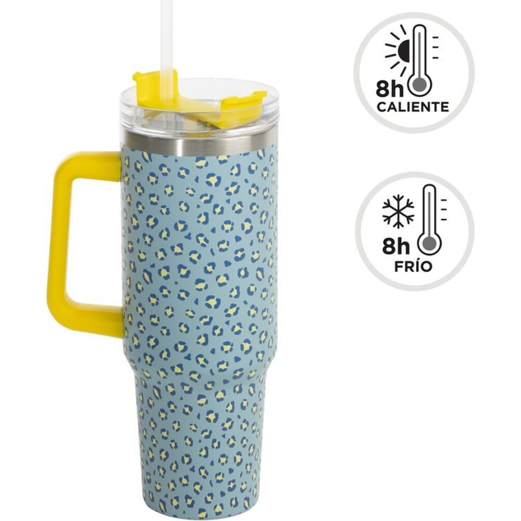 Copo térmico de 1,2 L com estampa animal fluorescente