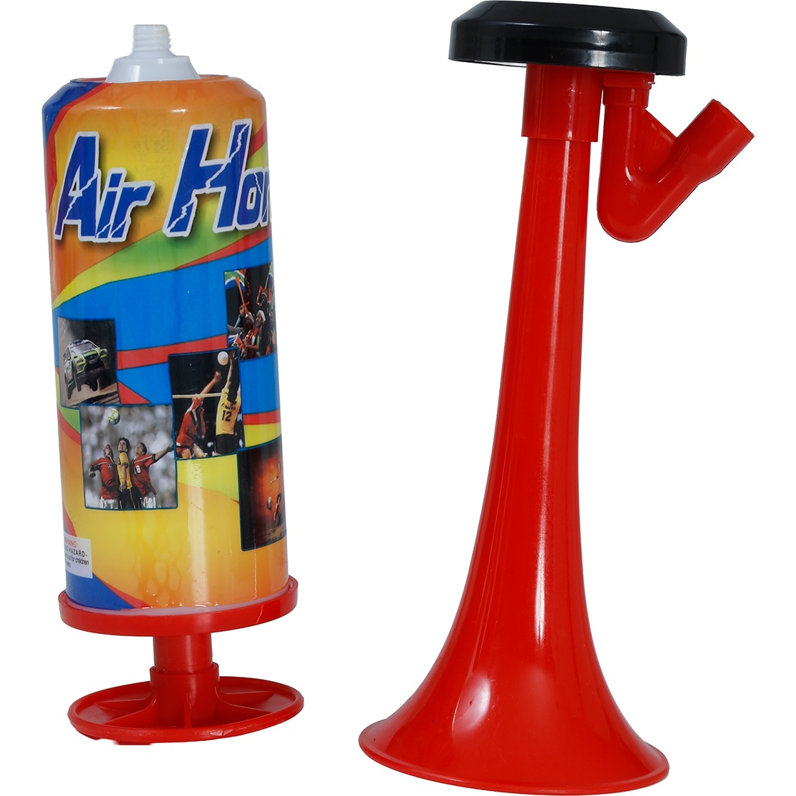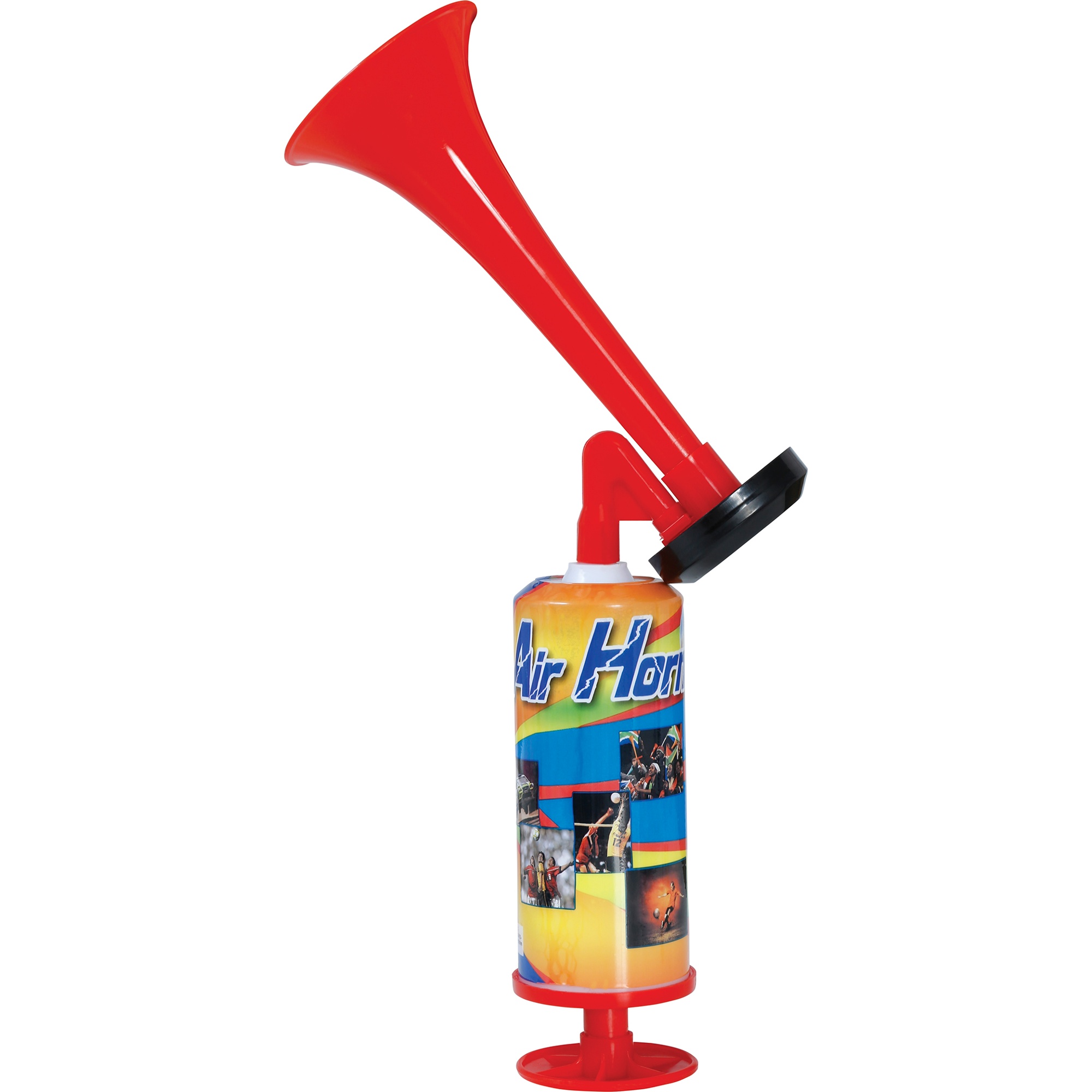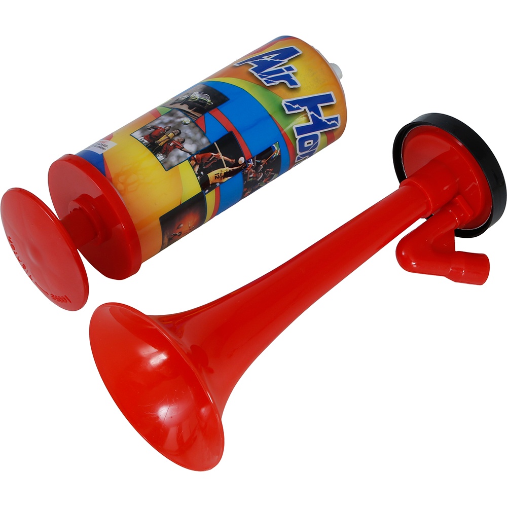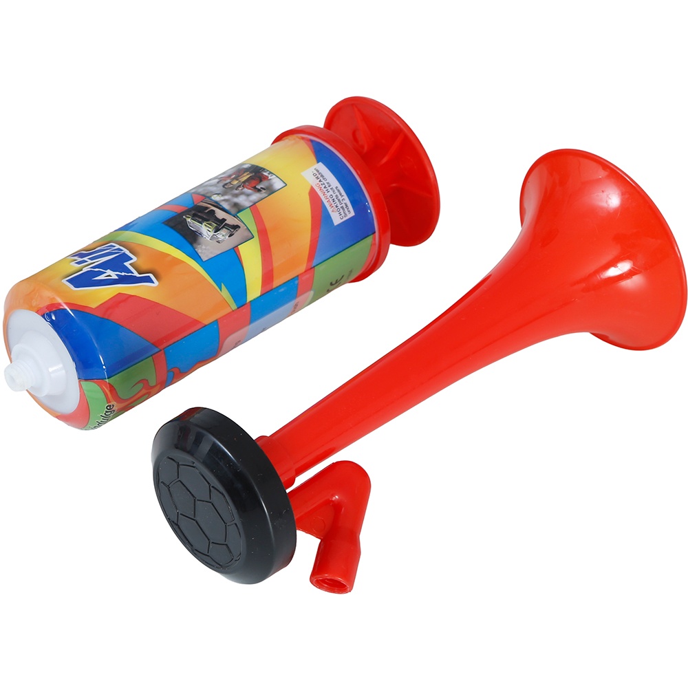 Corneta de ar comprimido manual ideal para animar todo tipo de celebrações. Emite um som potente e marcante que se destaca em aniversários, eventos esportivos, carnavais e despedidas. O seu uso é totalmente manual e portátil: basta que o senhor/a senhora acione a bomba para obter um estrondo sonoro sem necessidade de pilhas nem de eletricidade. Design leve e ergonômico para manuseio com uma só mão e acabamento em vermelho de alta visibilidade.