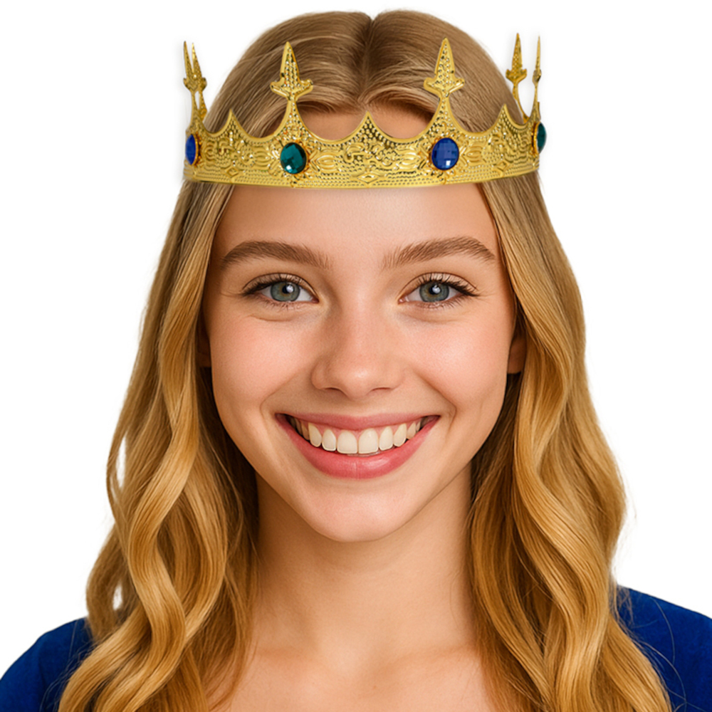 Dê um toque real à sua fantasia com esta coroa medieval metálica com pedras decorativas.