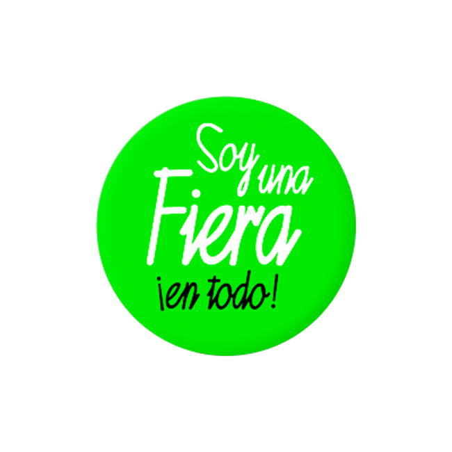 Este crachá redondo surpreende pela sua cor verde vivo, decorado com a inscrição "I'm a wild beast" em branco, por cima do texto "in everything" em preto e em tamanho mais pequeno. Pode utilizá-lo como qualquer outro distintivo com alfinete de segurança.