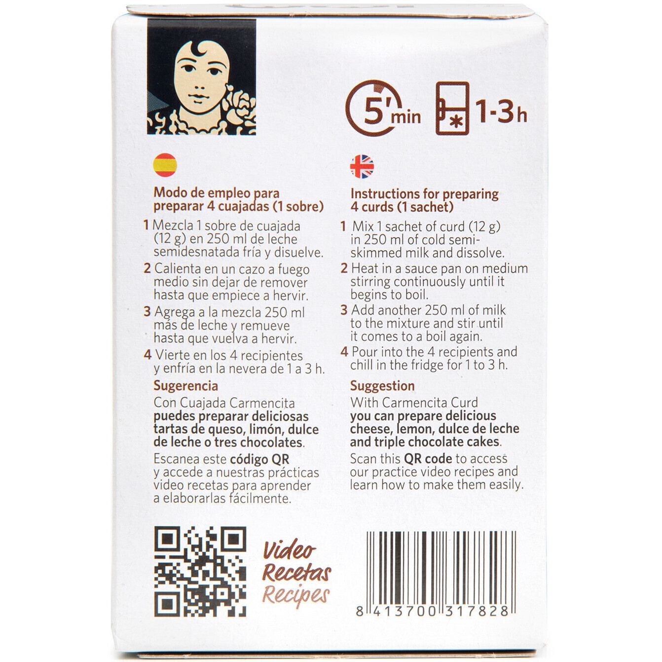 Modo de uso (1 envelope para 4 cuajadas):