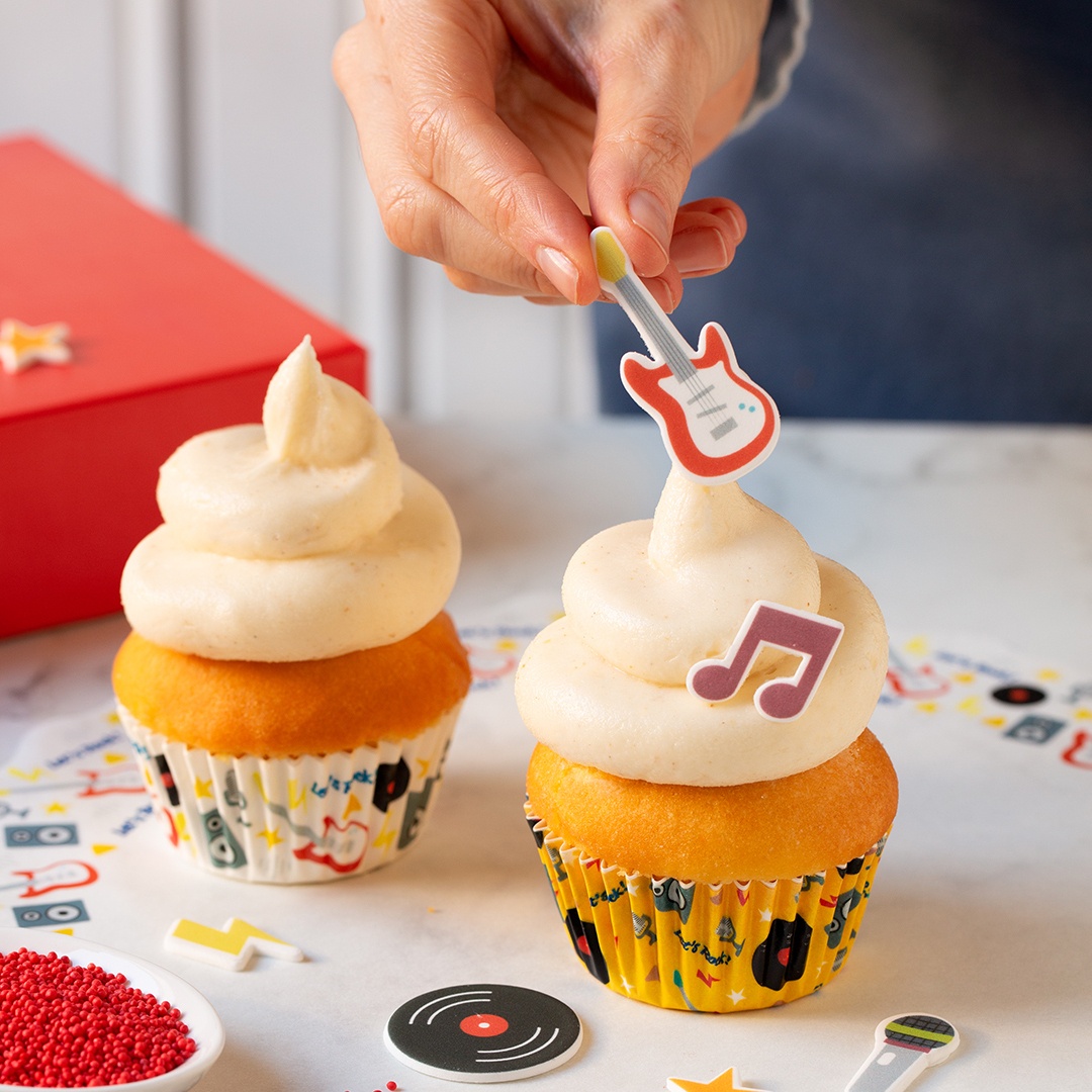 - Este conjunto de decorações de açúcar bidimensionais permite-lhe decorar os seus cupcakes de forma simples e original.