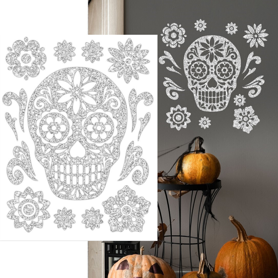 Decoração adesiva de caveira com purpurinas 40 x 30 cm