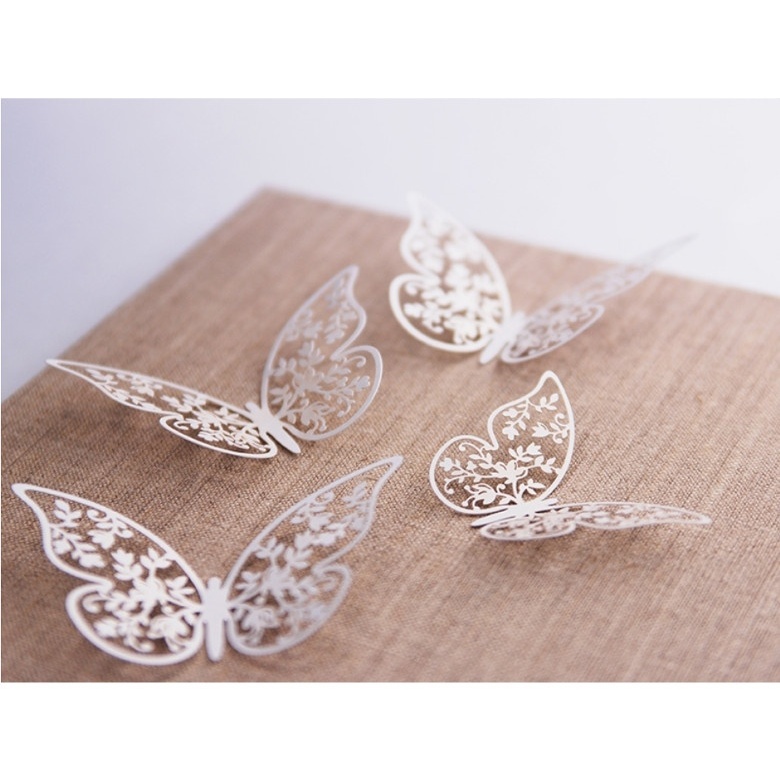 Também as pode utilizar para colar na parede ou num convite. São cortadas com um bonito desenho de flores no interior das asas.