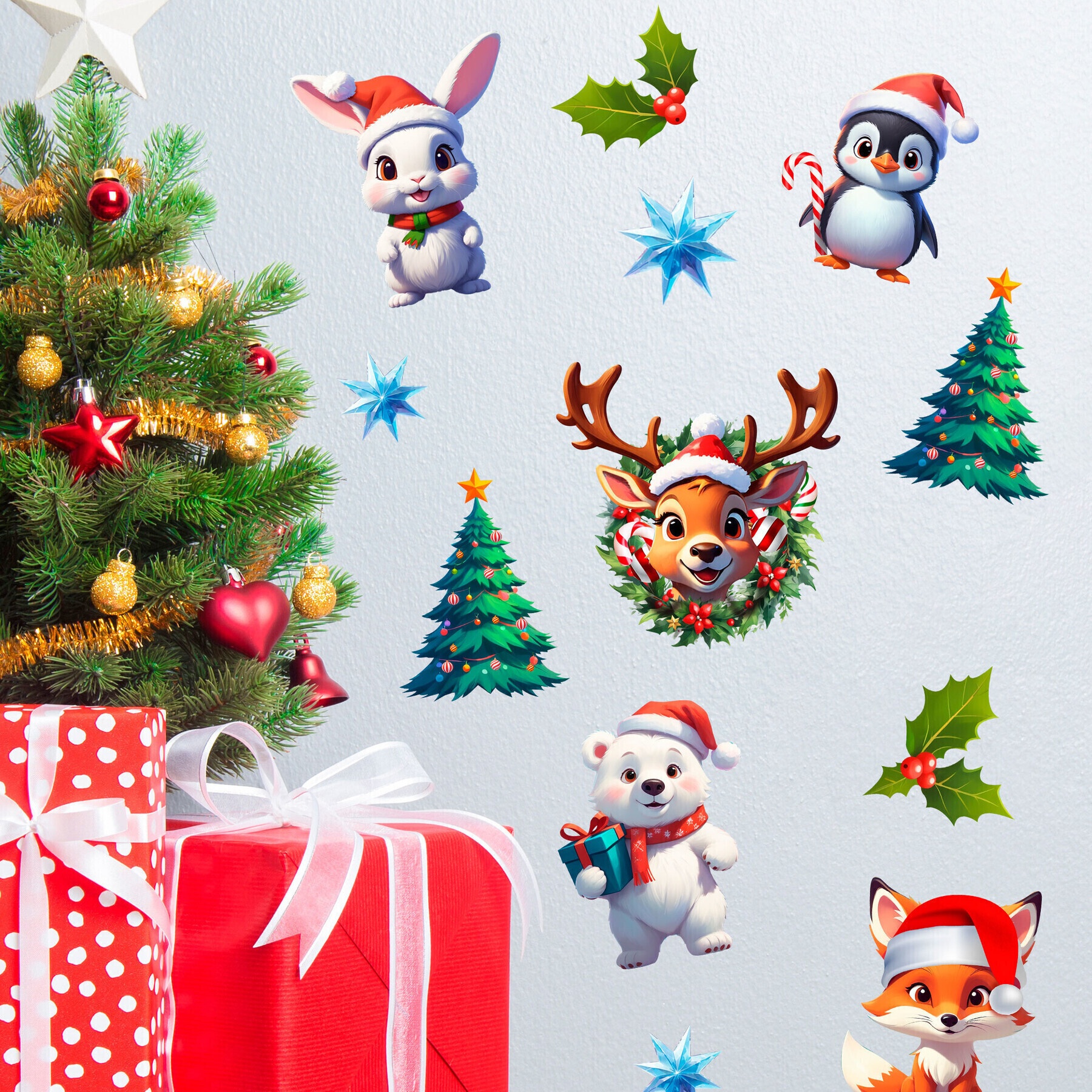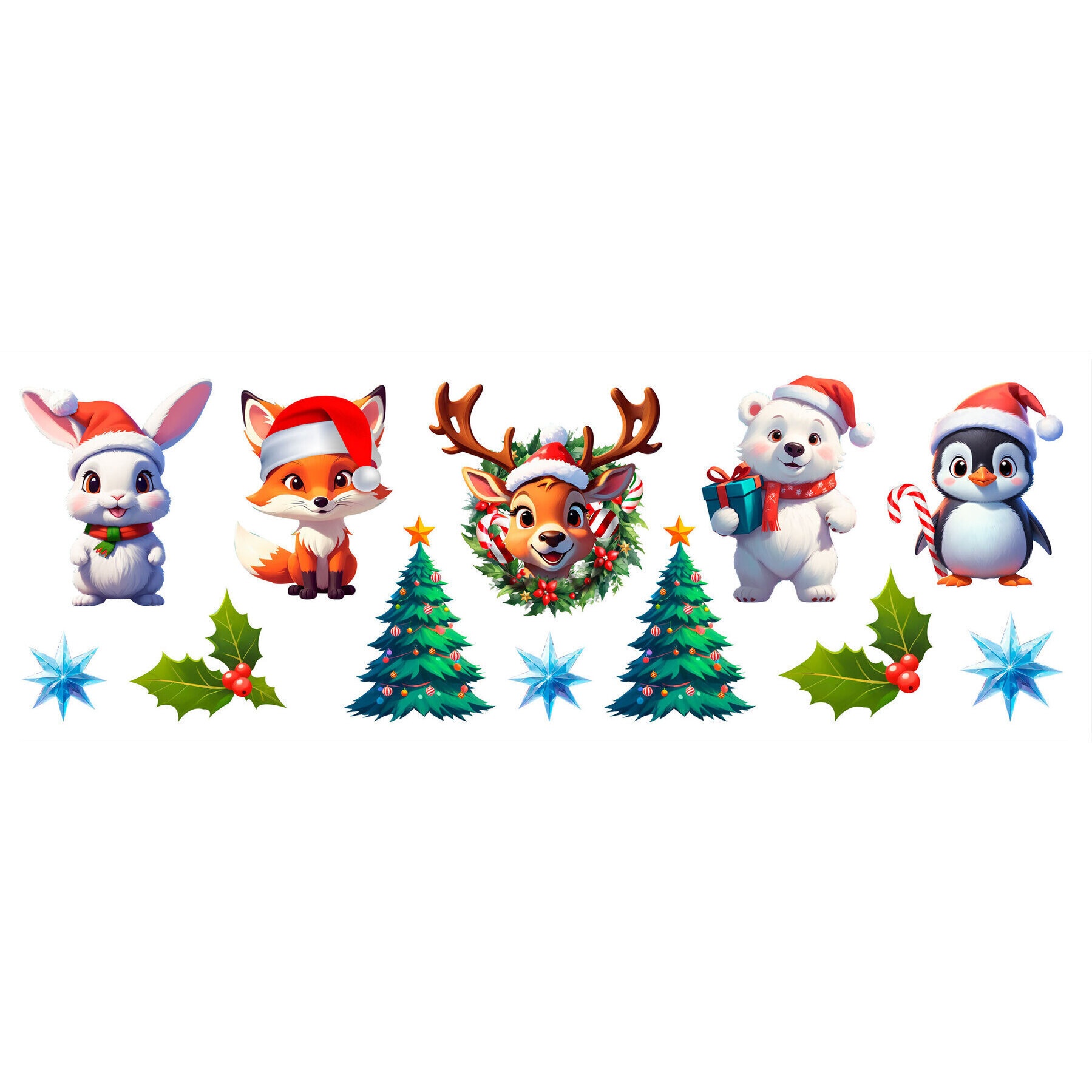 Decoração de parede adesiva de animais natalinos de 70 x 25 cm