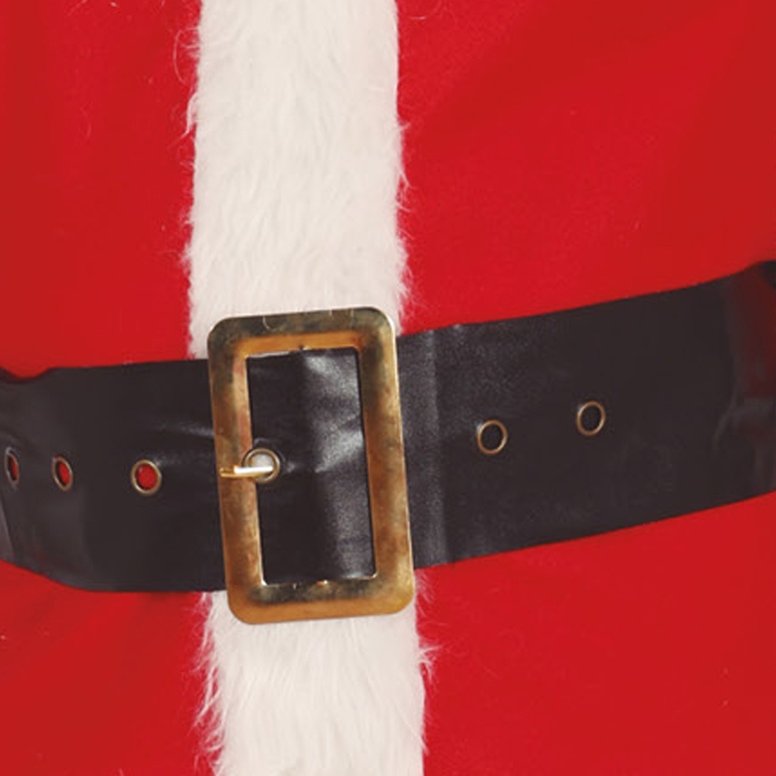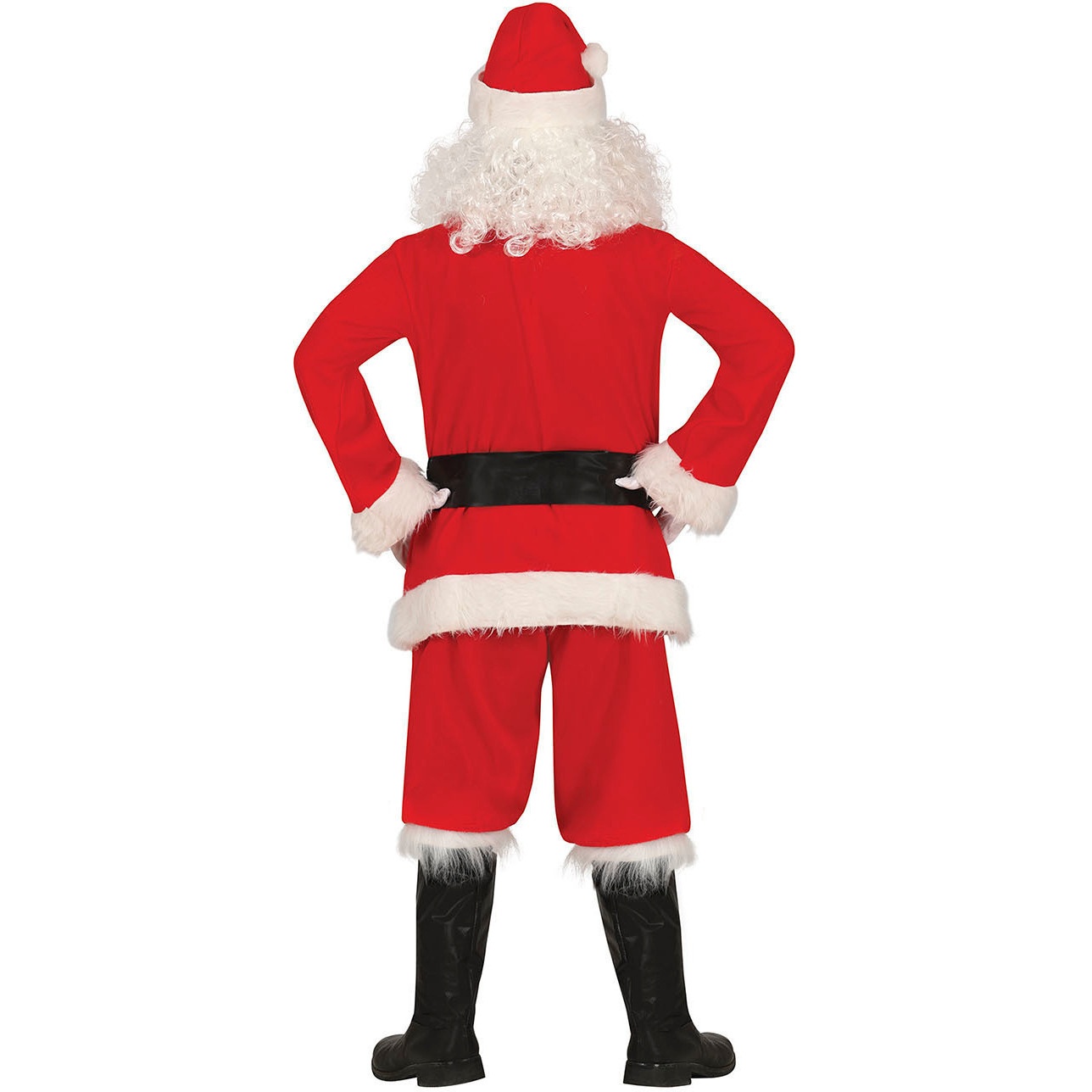 É composto por um conjunto de casaco e calças com as cores características do Pai Natal e tecido aveludado para o tornar mais elegante. O chapéu segue o mesmo estilo e, com o cinto preto com fivela dourada, pode ajustar o casaco à sua medida.