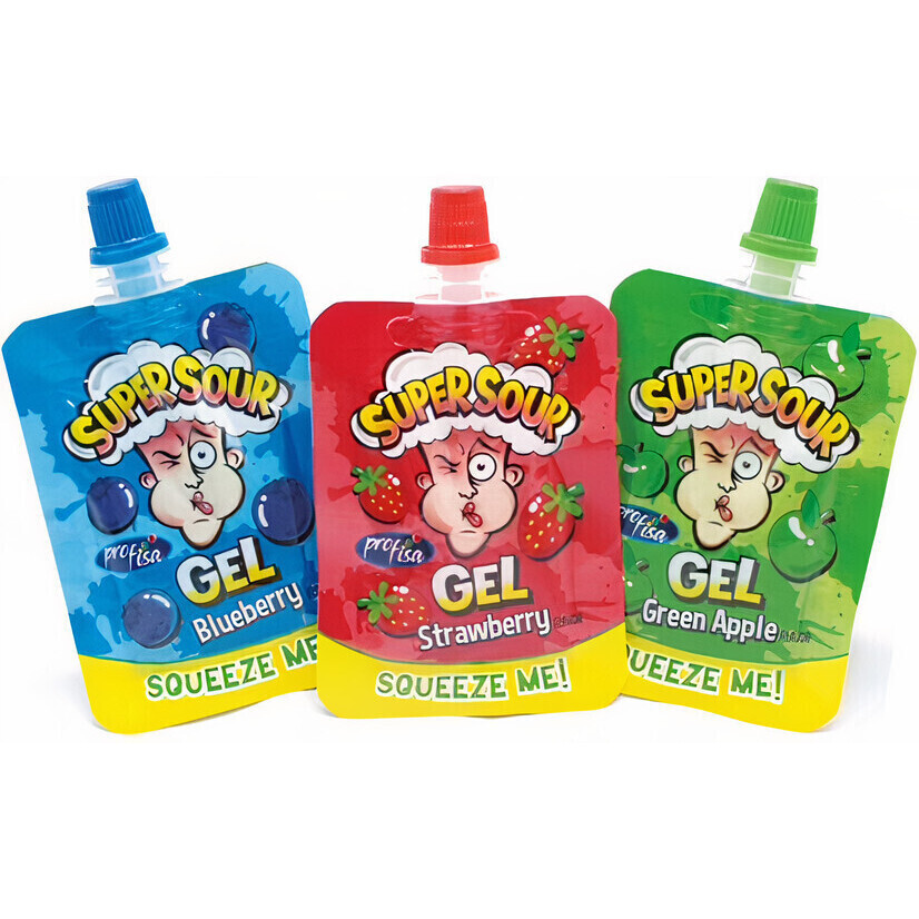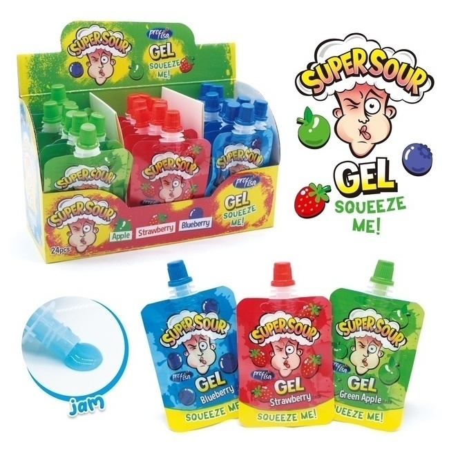 - Doce líquido com sabor de morango, maçã verde ou mirtilo.