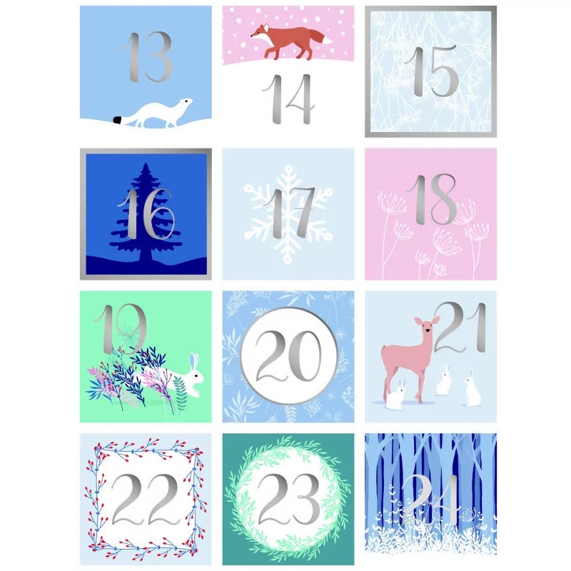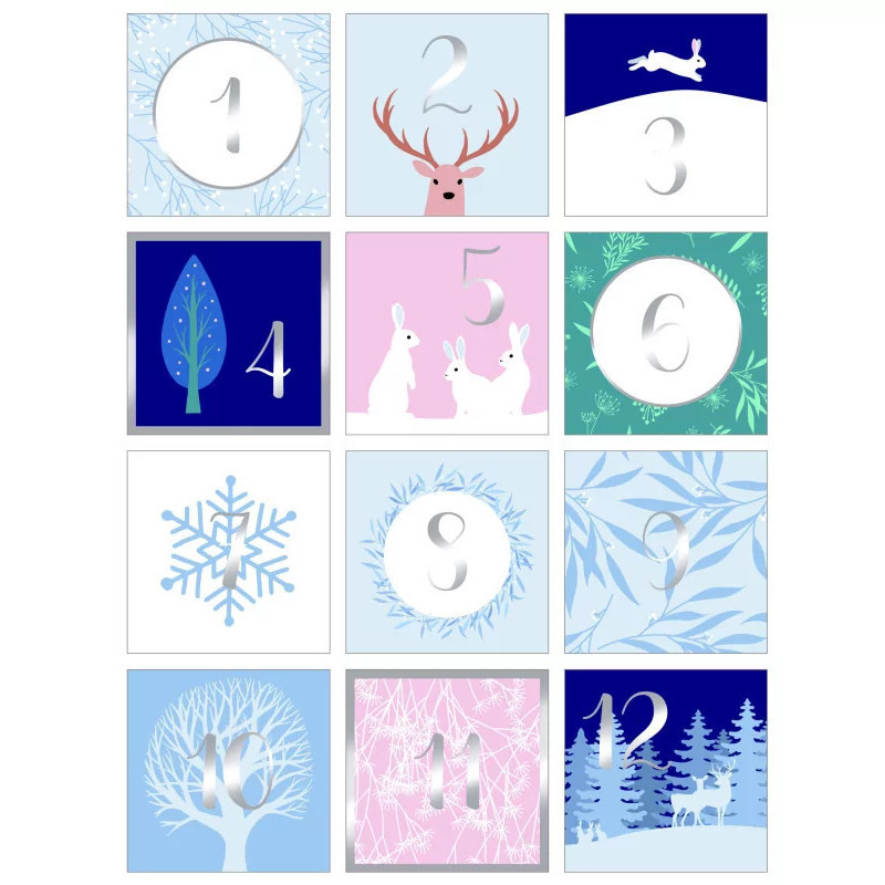 Etiquetas Numéricas para Calendário do Advento Floresta Invernal - 24 unidades
