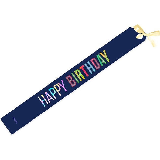 Celebre o seu aniversário com esta divertida faixa com a inscrição "Happy Birthday". Inclui uma fita amarela para prender na parte inferior da faixa e ajustar facilmente o tamanho da faixa ao seu corpo.