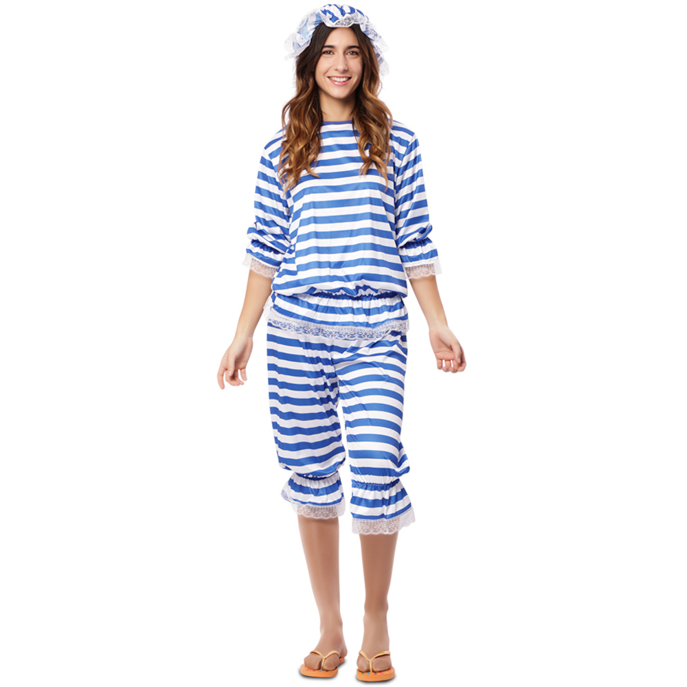 Este divertido modelo de banhista, inspirado nos fatos de banho dos anos 20, será uma opção original para qualquer festa de verão.