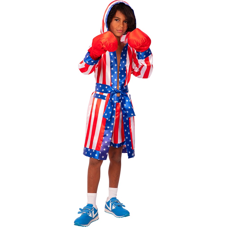 Com esta fantasia, o(a) senhor(a) ajudará o seu filho a tornar-se um boxeador americano extraordinário.