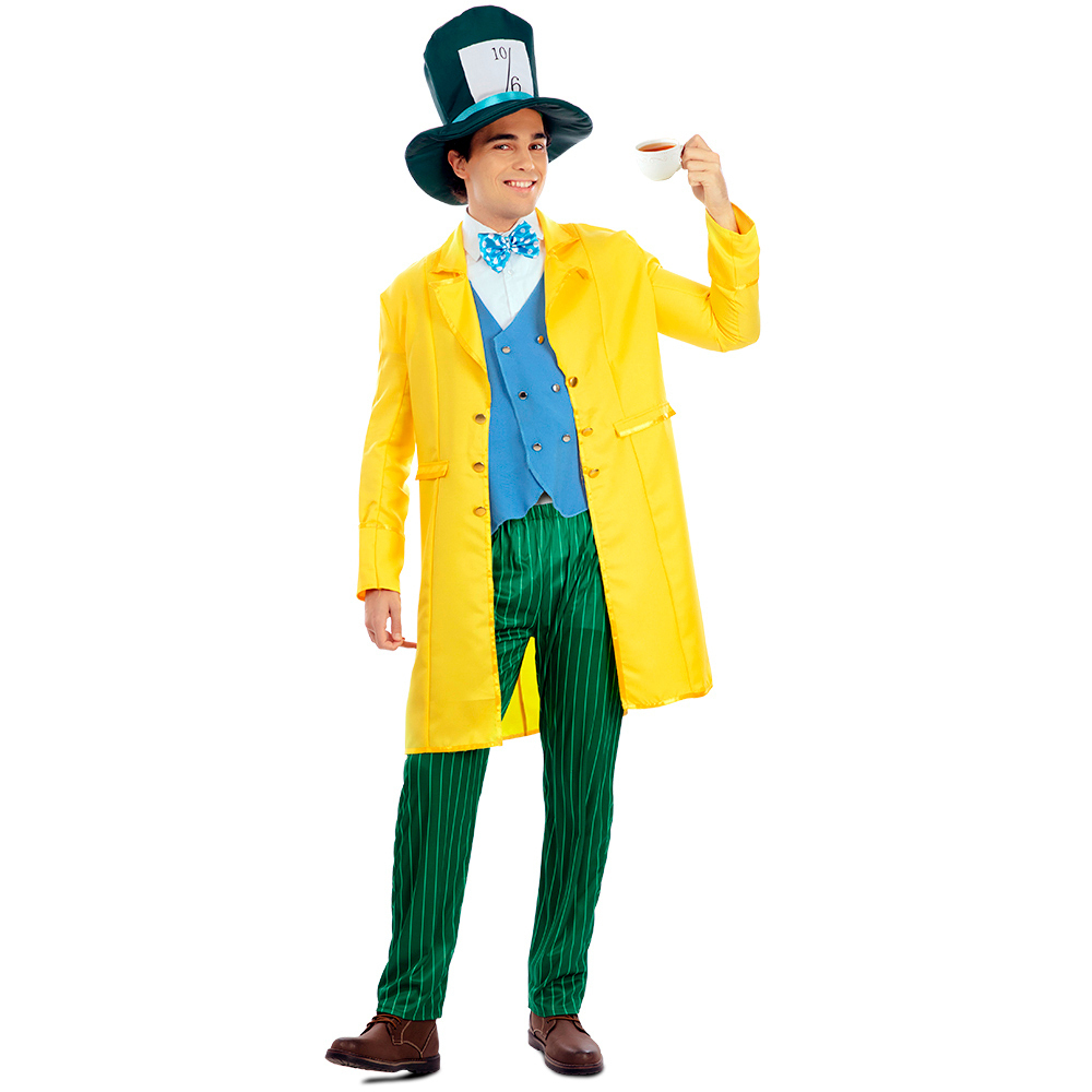 Fantasia de Chapeleiro Louco amarelo e verde para homem